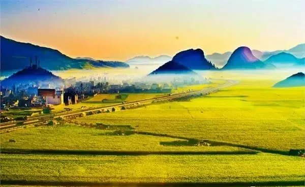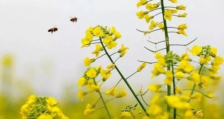 油菜花开,一片金黄,增添了乡间田园缤纷的色彩。余邵诗云:“油菜花开满地黄,丛间蝶舞蜜蜂忙;清风吹拂金波涌,飘溢醉人浓郁香”。油菜花开放,花粉中的花蜜,引来彩蝶和蜜蜂在花丛间飞舞。浓郁花香令人陶醉。