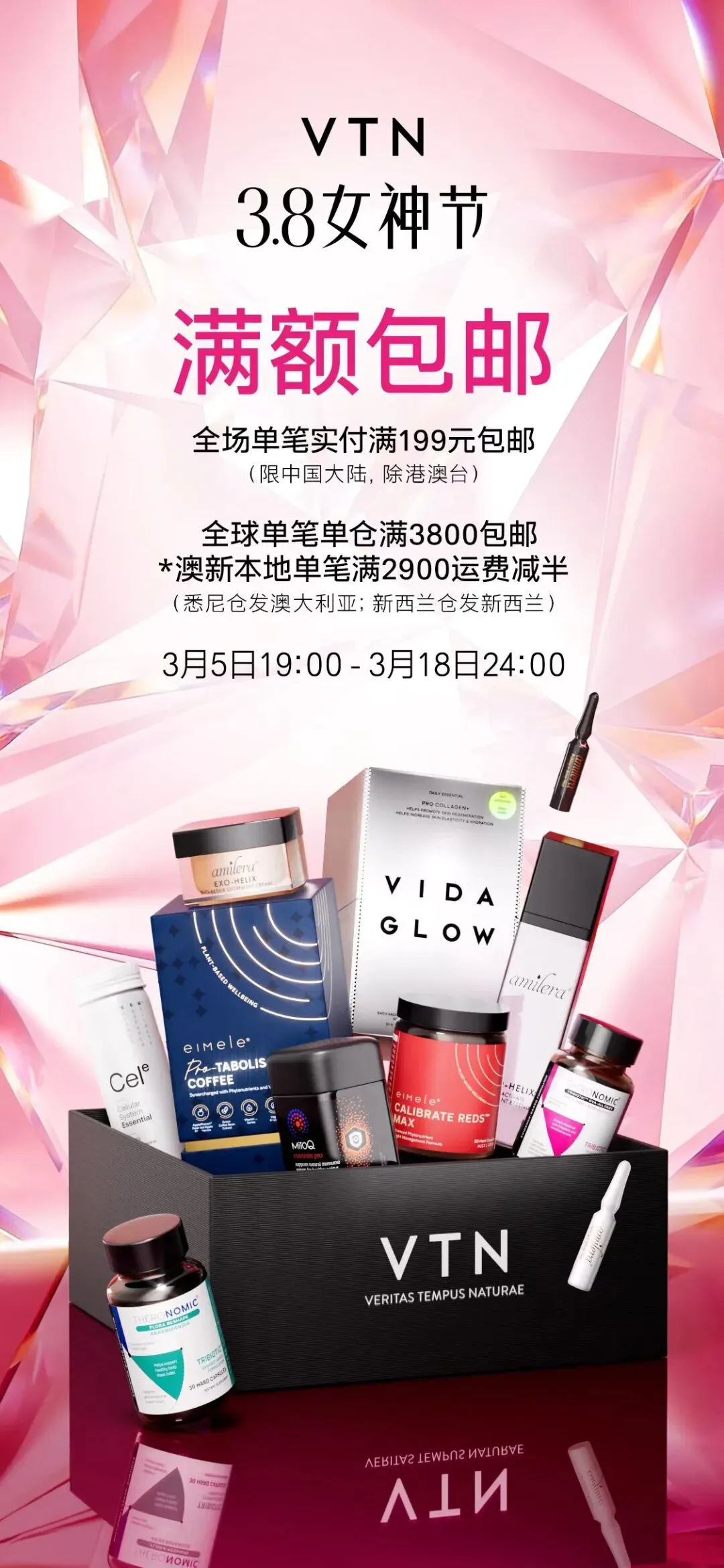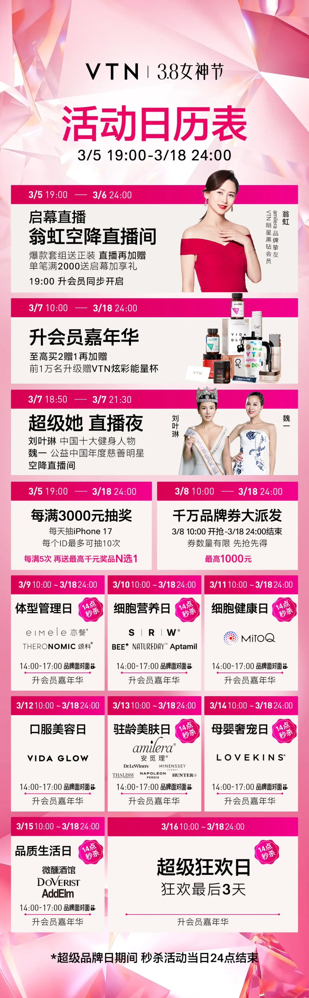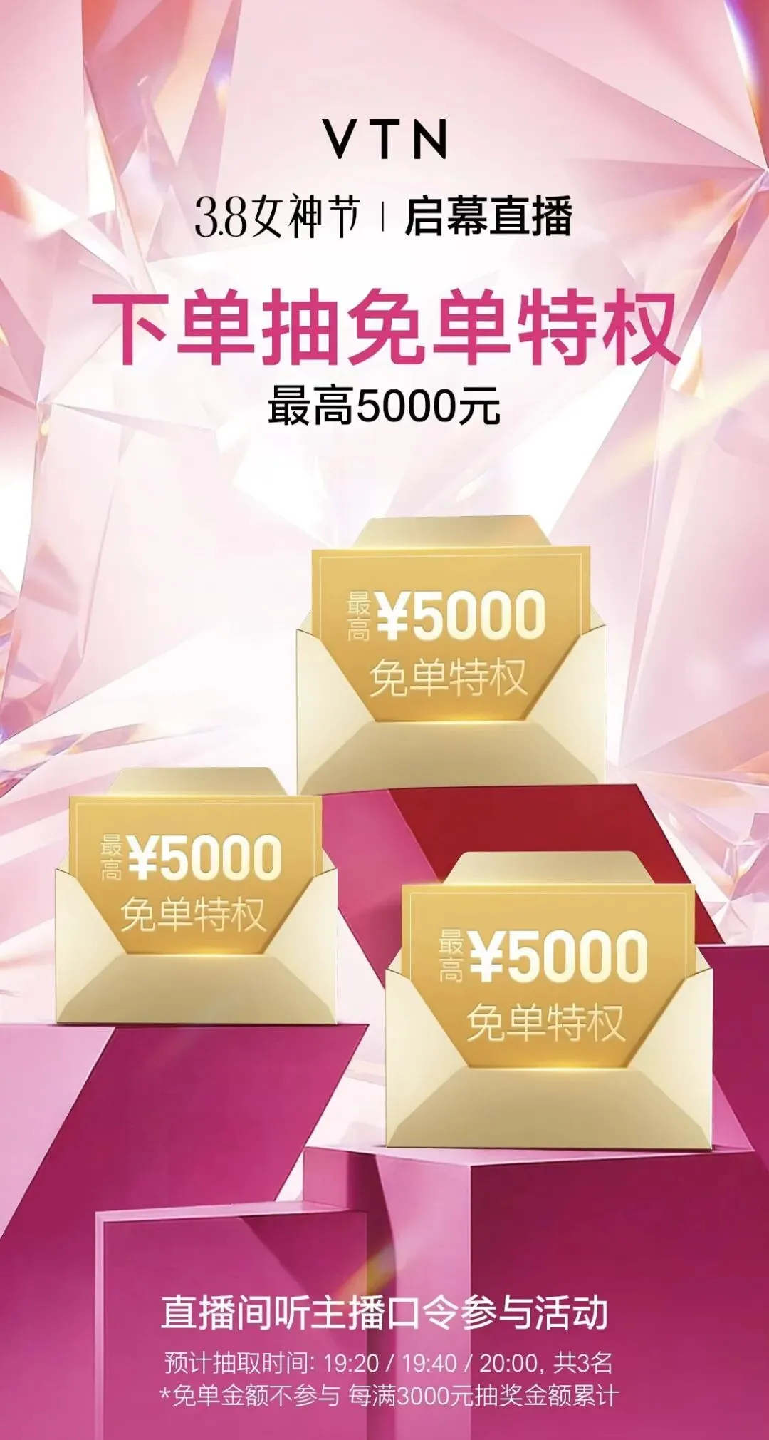 VTN·3.8女神节,1亿礼赠 宠爱加码,开启时间:3月5日 19:00 ~ 3月18日 24:00【北京时间】