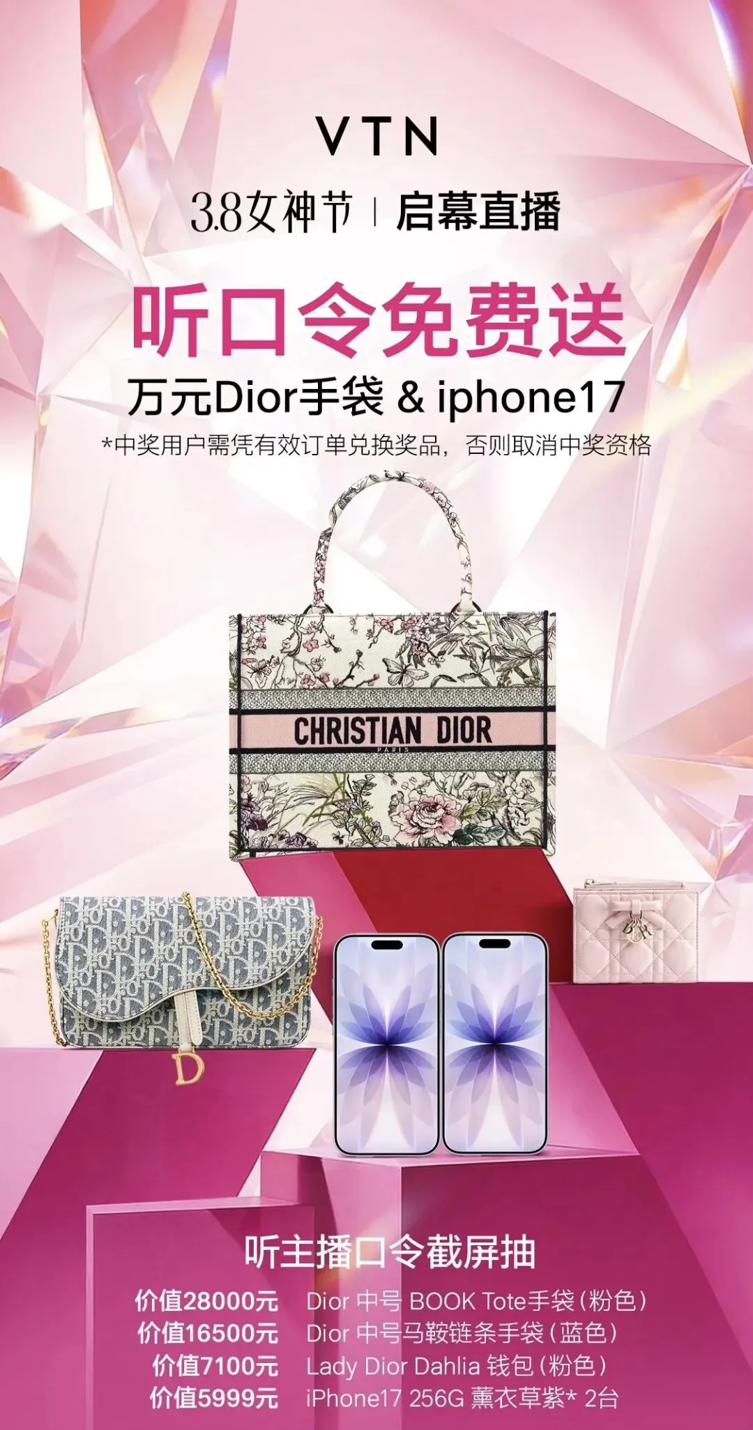 - 3个Dior奢品包 2台iPhone 17 直播间免费抽