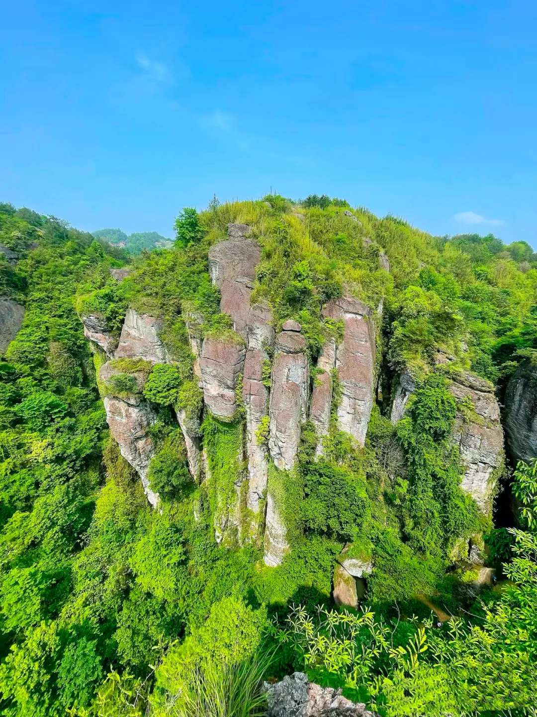 新昌百里丹霞地貌的精彩一段,悬崖、绝壁、山峰、奇石是这里的主要景观,巧夺天工的峭壁奇石,确有一种仙境之美。