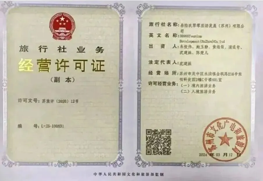 旅行社许可证号:L-JS-100831