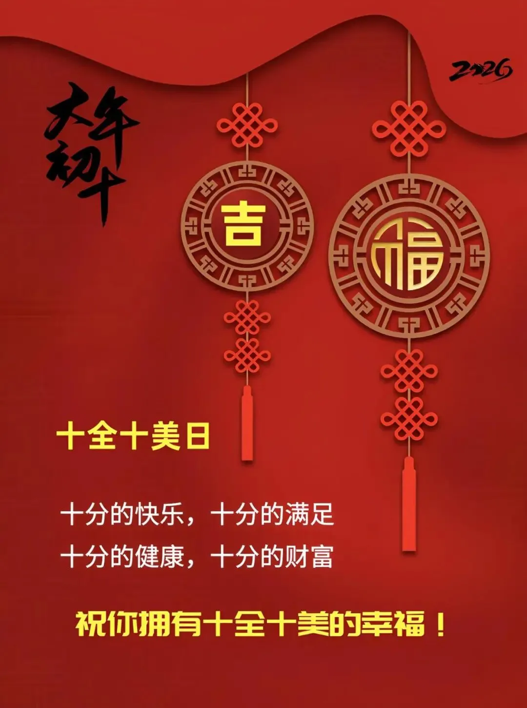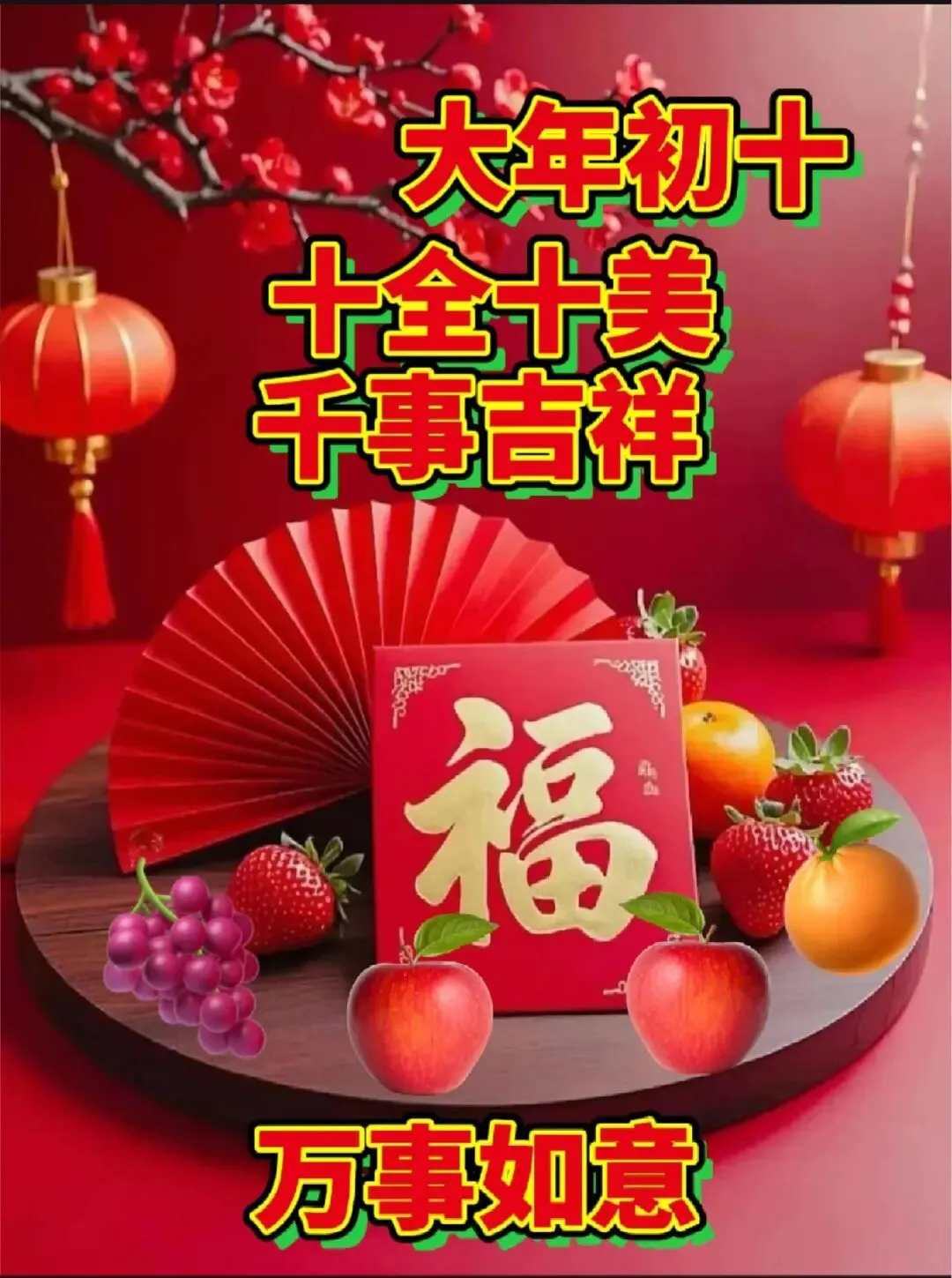 大年初十,我准备了十全十美的祝福送给你🎁,愿你:做事十拿九稳✅,生活十分如意🍀,家庭十分幸福🏠,学习十分进步📚,爱情十分甜蜜💞,友情十分和谐🤝,前途十分光明🌟!