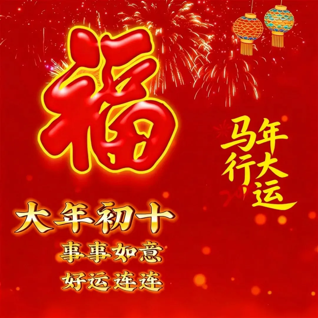 大年初十,十全十美,最美祝福送给您,真心祝您,家庭十分幸福,生活十分惬意,心情十分快乐,身体十分健康!马年行大运,事事如意!