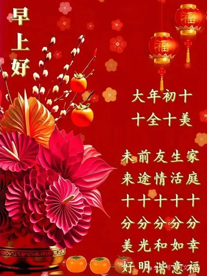 正月初十,十全十美的好日子🌟,在此真诚的问候👋,实意的祝福🧧,全心全意的祝愿💖,祝愿大家,在崭新的一年里🚀,快快乐乐的工作💼,健健康康的生活💪,拥有多姿多彩的心情🌈,十全十美的人生✨!