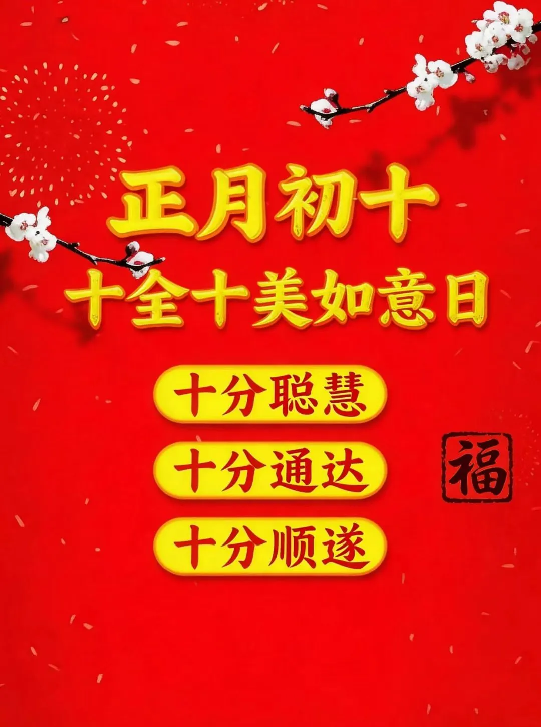 大年初十,十全十美日,送你最完美的祝福,好天气,好运气,好福气,生活美,家庭美,事业美,一起全部送给你!