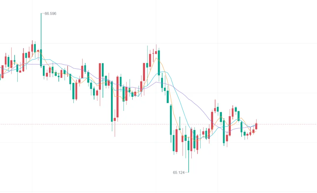 1、建议在67.3-67.5美金附近做空,止损0.3个点,目标看65.5-63.3美金附近即可,
