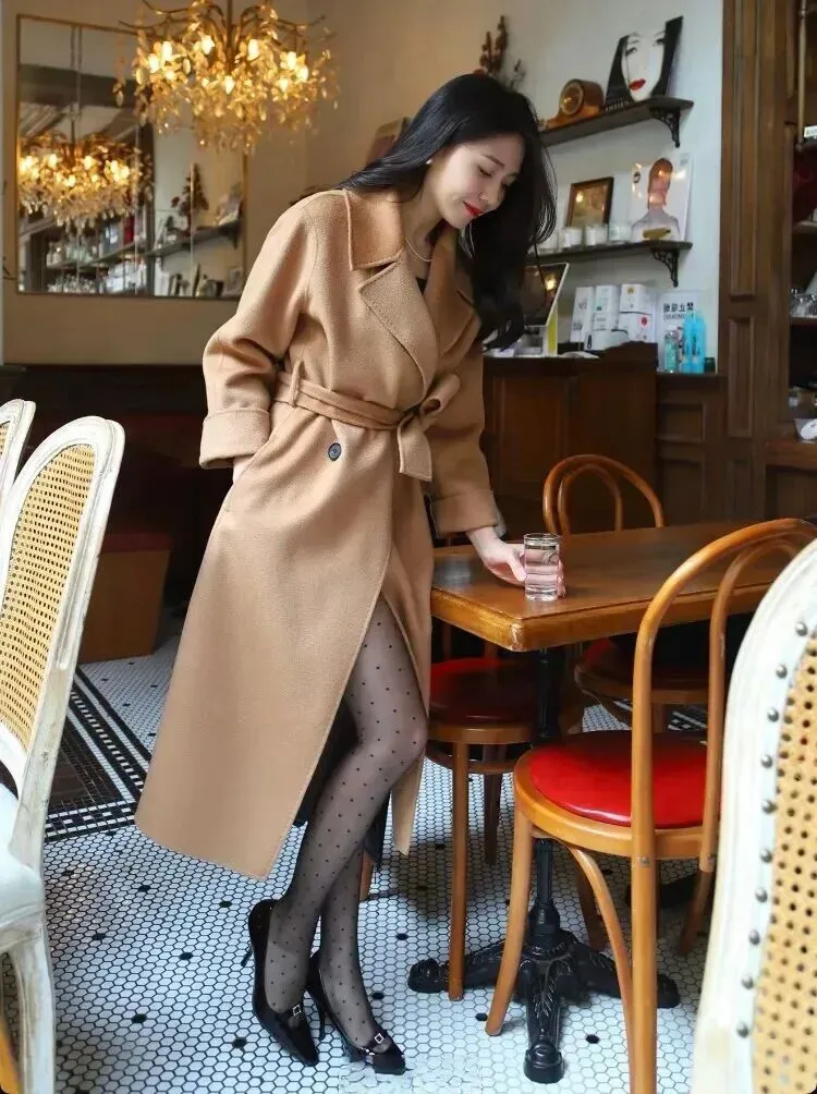 .来说.说驼色大衣。.这种颜色.真的太经典了.,怎么穿都.不会过时。长.款的驼色大衣.剪裁很利落.,穿在身上.特别.显高.。里面搭一.件简单的.基础款.内搭,整个.人看起.来就很大.方。小个子.的女.生可以.选有腰.带的设计,拉.高腰线,比.例一下子.就好了。.配上波点丝袜.和细跟踝靴.,复古.味道马上就出.来了。想想.在暖黄.色的灯光下,.大衣的质感被.照得特.别好.,木质桌子和.衣服面.料还有种莫名.的和.谐。脚上.那双黑.色尖头高跟鞋.更是加.分,腿长了一.大截。