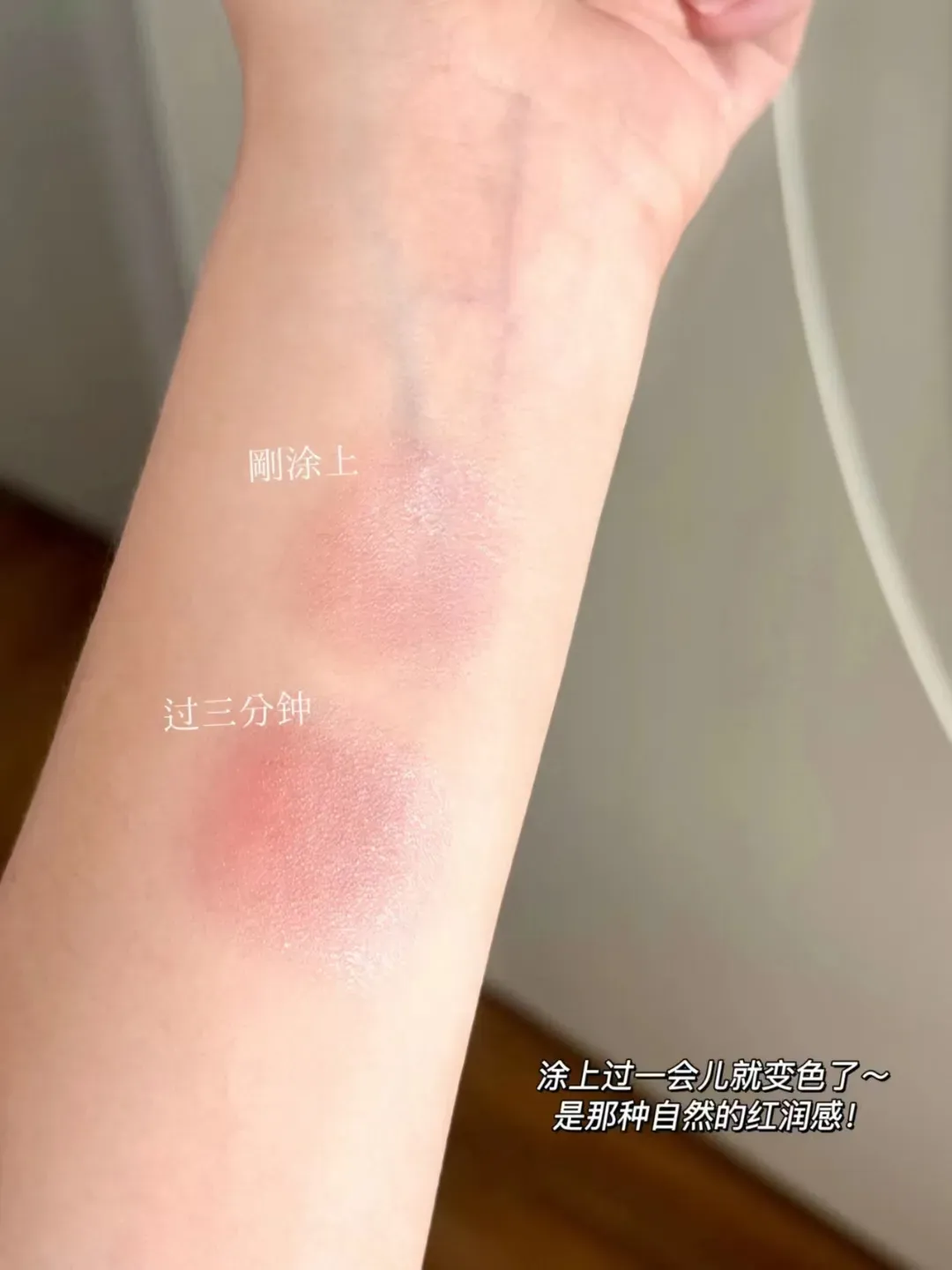 刚抹上去的时候是透明色的,5秒后就开始变色,淡淡的樱花粉,少女感满满!
