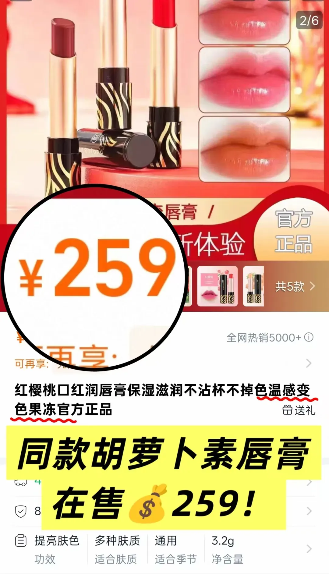 日常某宝同款零售259/支