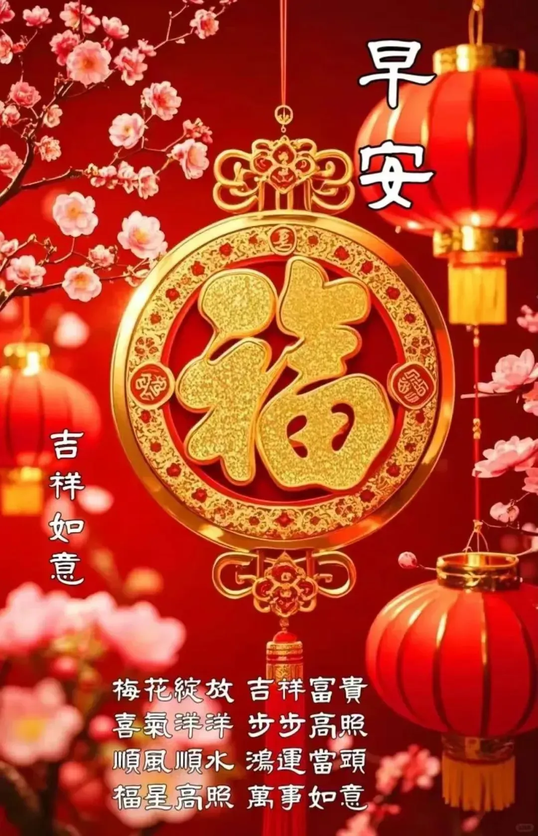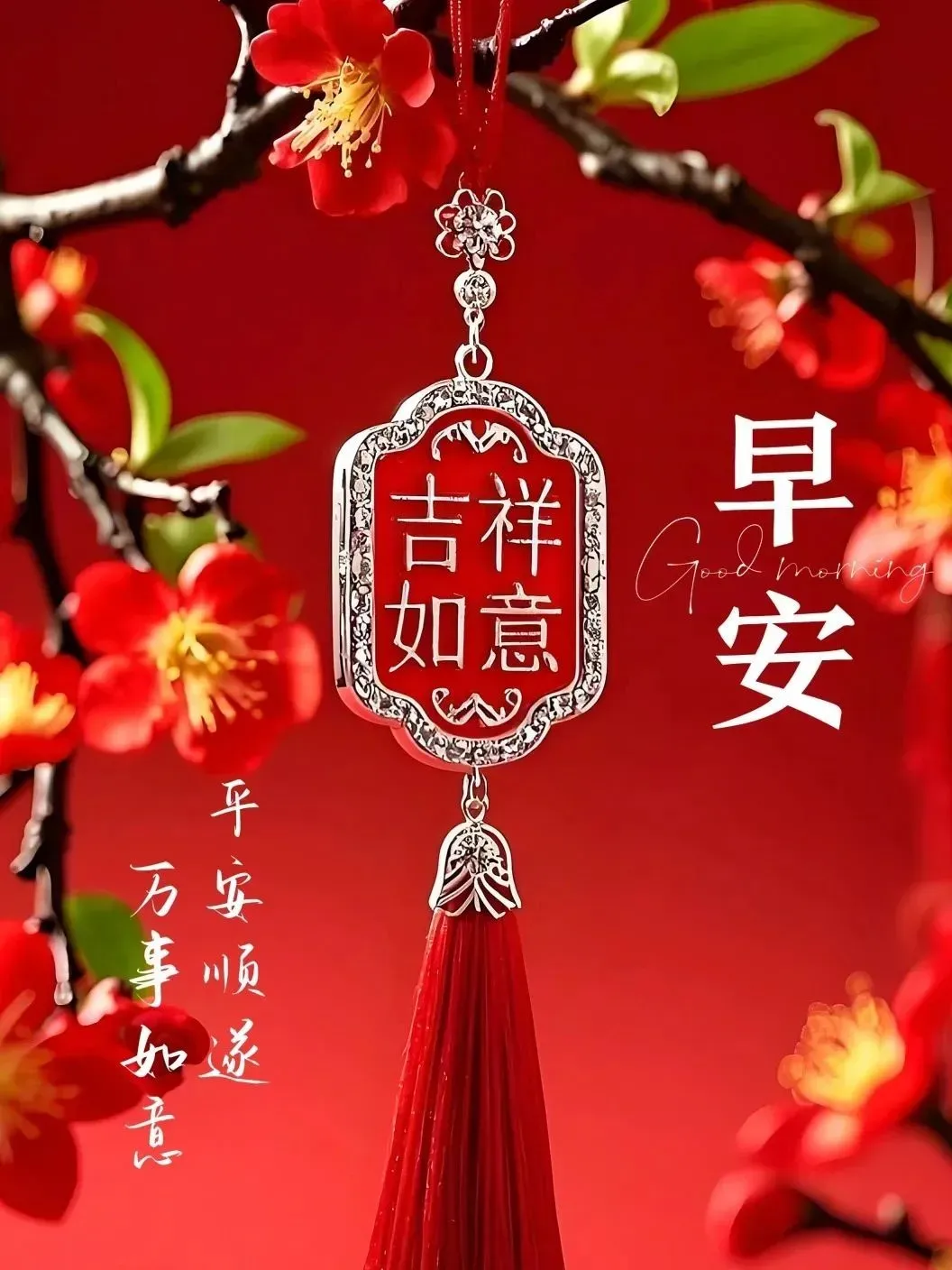 送你一朵吉祥花,年年健康有钱花;送你一杯吉祥酒,温馨甜蜜到永久;送你一轮吉祥月,天天出门有喜悦;送你一道吉祥符,好运伴你平安福!早安!