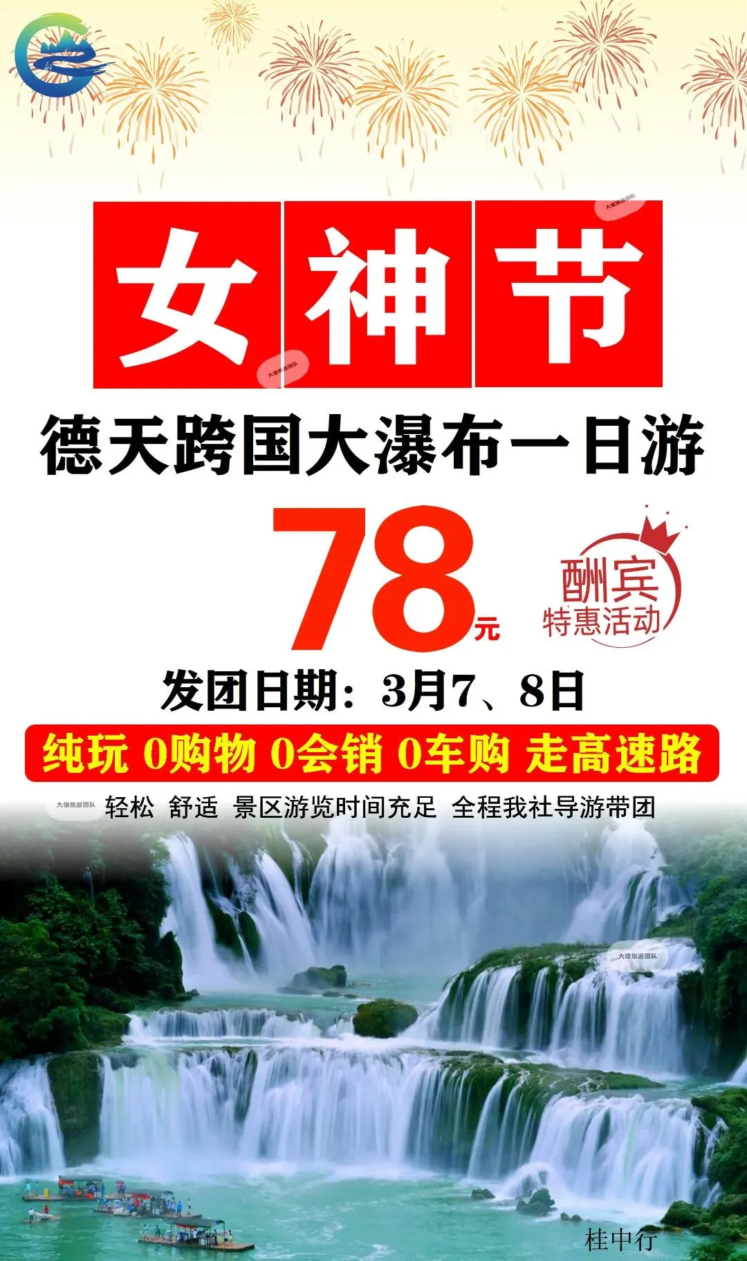 德天跨国瀑布景区现推出“3.8妇女节”促销活动,具体内容如下: