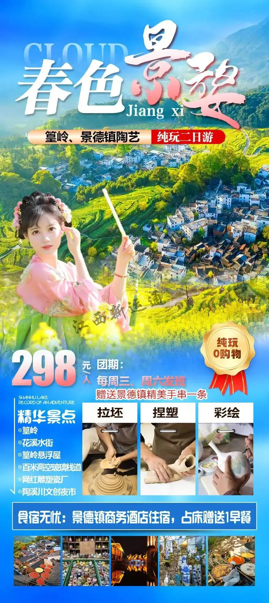 行程特色:赠送景德镇手串一条,不限款式,随机发放!
