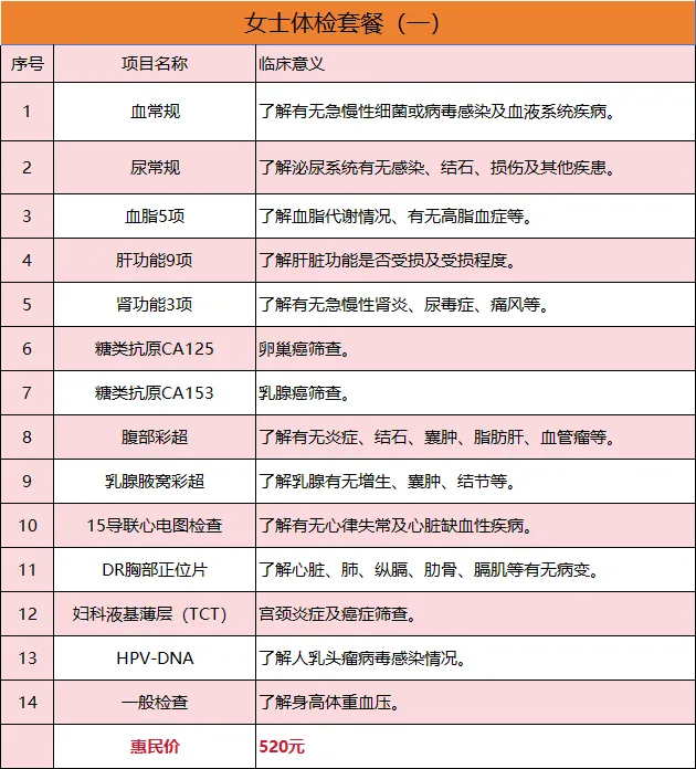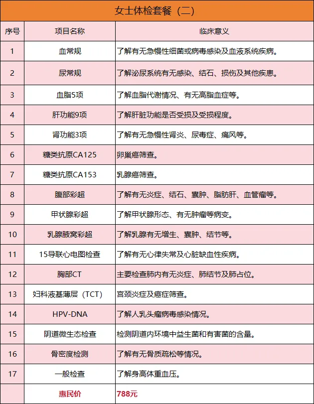 健康体检惠民套餐