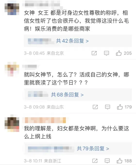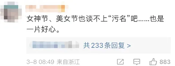 也有网友认为,“女神节”、“美女节”谈不上“污名”,不用上纲上线。