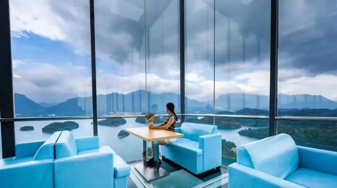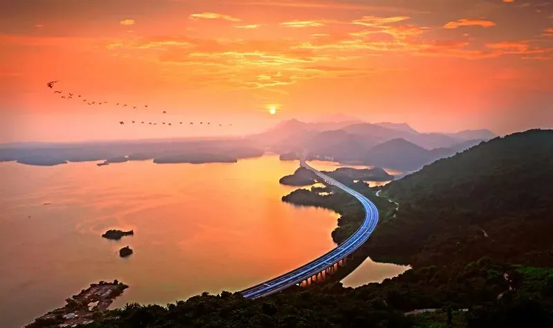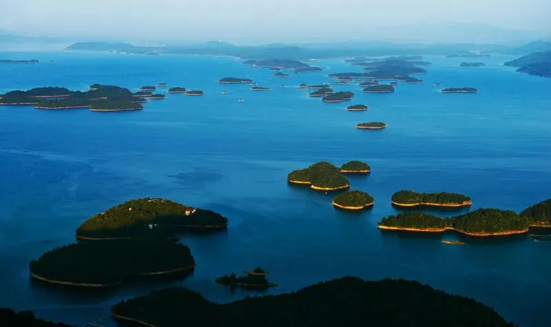 这里湖光浩淼,碧波万顷,有308平方公 里的湖面,湖水深邃纯净,平均水深45米,能见度逾9米;湖内千岛落珠,错落有致,有5亩以上岛屿997个,且岛岛植被繁茂,翠色欲流,再加上那些时隐时现,形态各异的无名小岛, 环湖峰峦叠嶂,古木参天,满目葱茏。