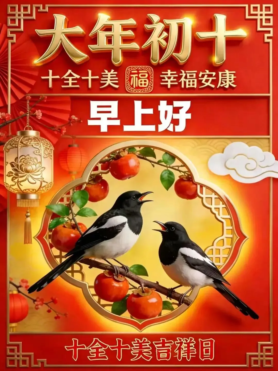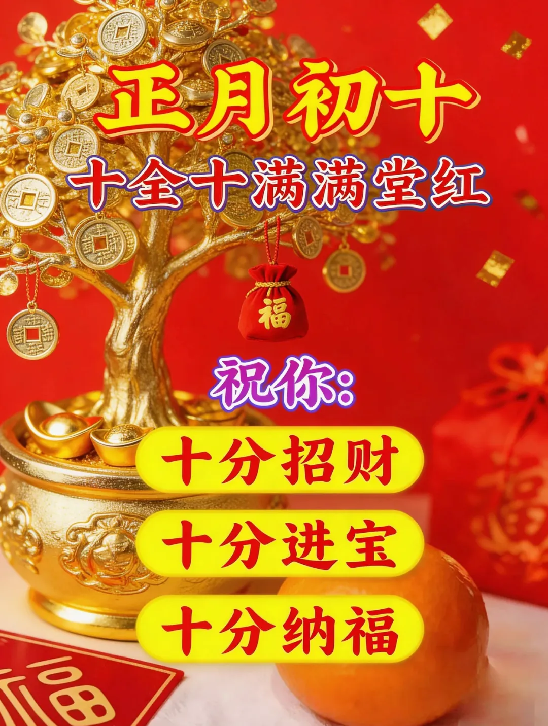 🎉🌹大年初十,我准备了十全十美的祝福送给你,🌵🌹愿你:做事十拿九稳,🌸💧生活十分如意,家庭十分幸福,🎉🌹学习十分进步,爱情十分甜蜜,💐💕友情十分和谐,前途十分光明!🧡🌈