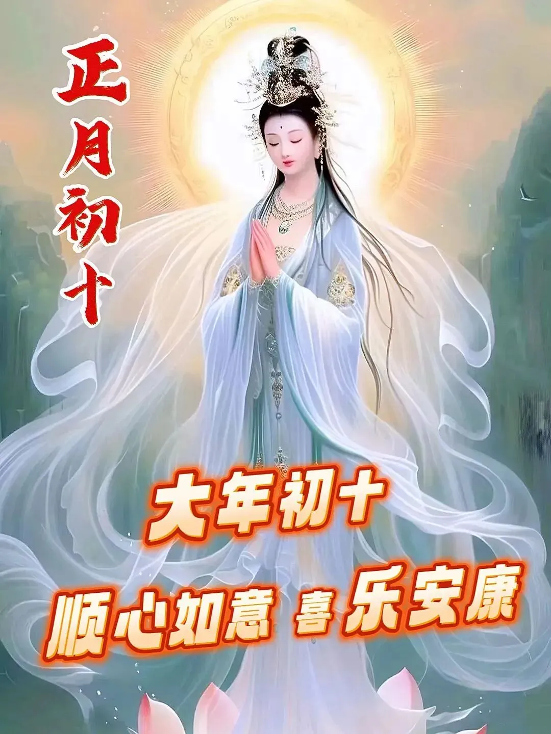 🌸💧大年初十晨曦明,笑迎幸福送温馨。🍑💝心想事成喜迎春,万事如意笑开颜。🌾🙏祝你福寿双全乐无边,财富滚滚幸福伴。🌹❤️春风得意情常在,🍹祝福送到家家欢。🌸💧