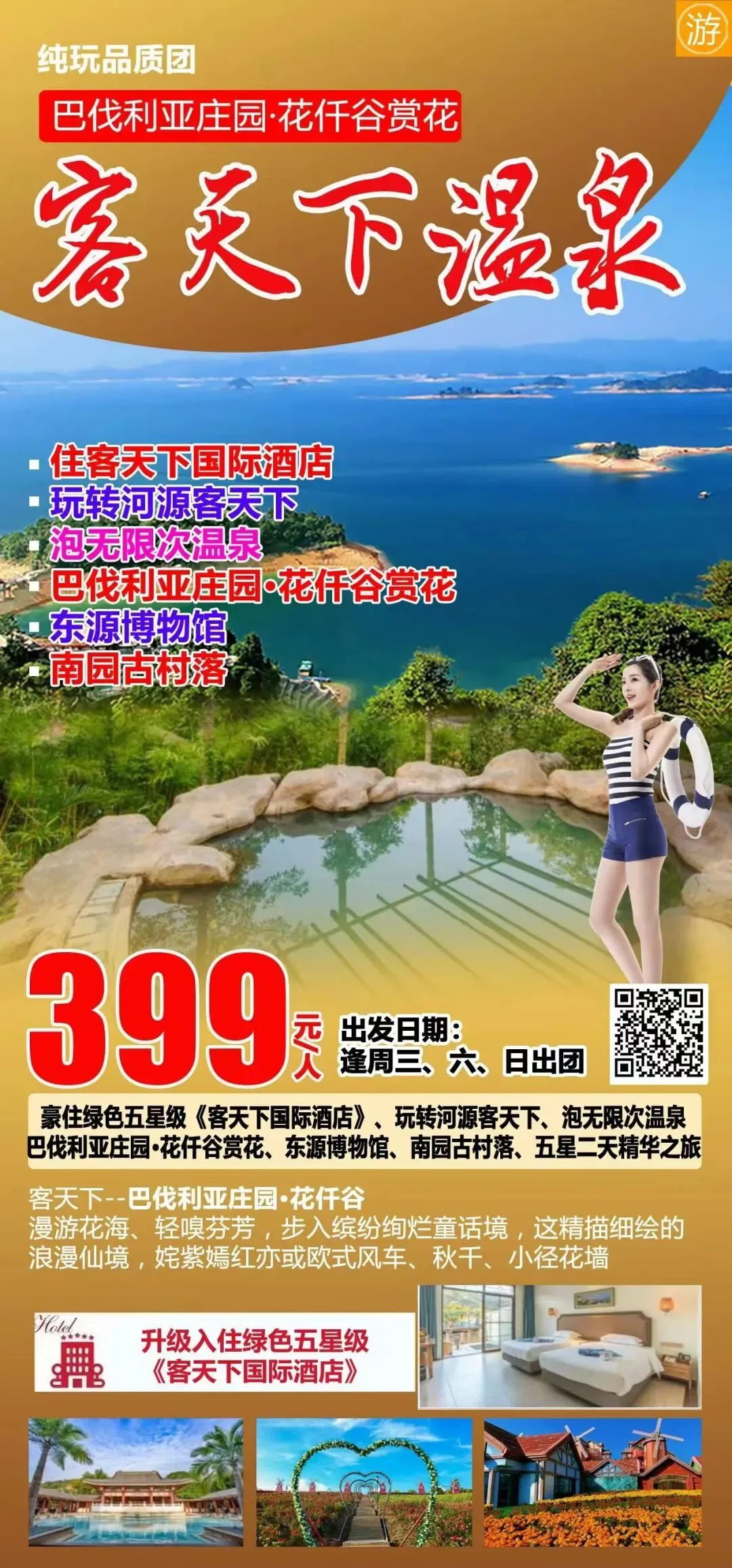 赴花海、泡温泉、品美食、赏古镇