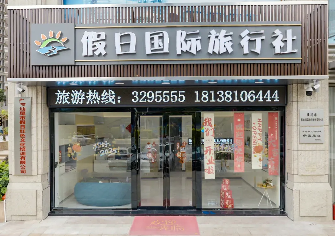 汕尾市假日国际旅行社有限公司成立于2009年,是广东省首批“3A级旅行社”、广东省“诚信示范企业”、汕尾市“文明旅游示范单位”、汕尾市 “诚信旅行社”。