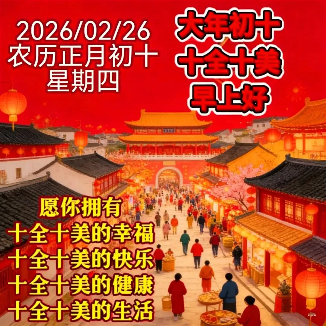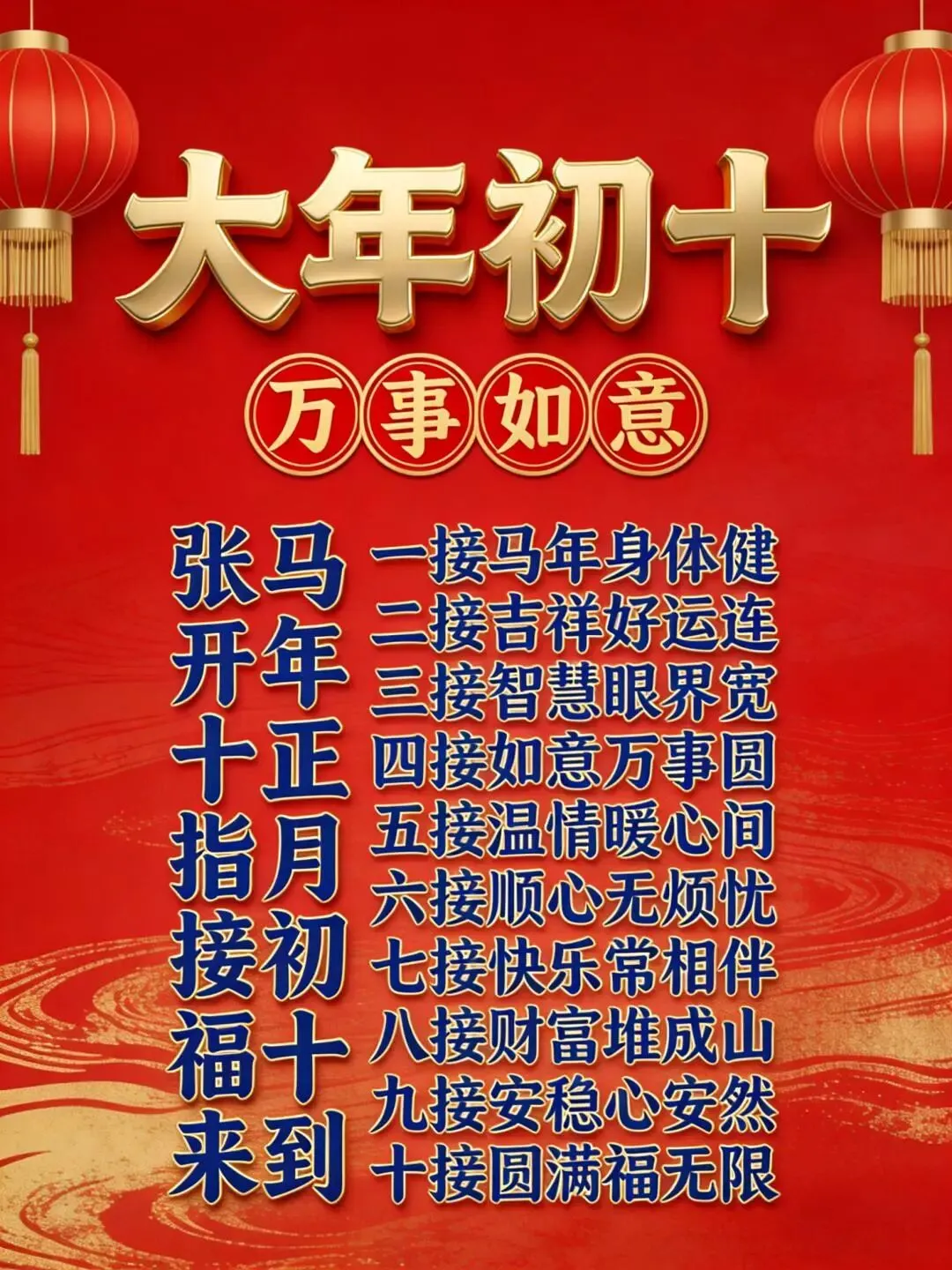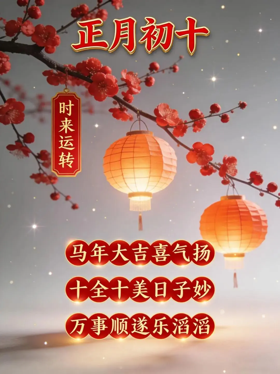 今天是正月初十,十全十美的好日子,祝您2026马年:十全十美,时来运转,十分如意,十分顺心!