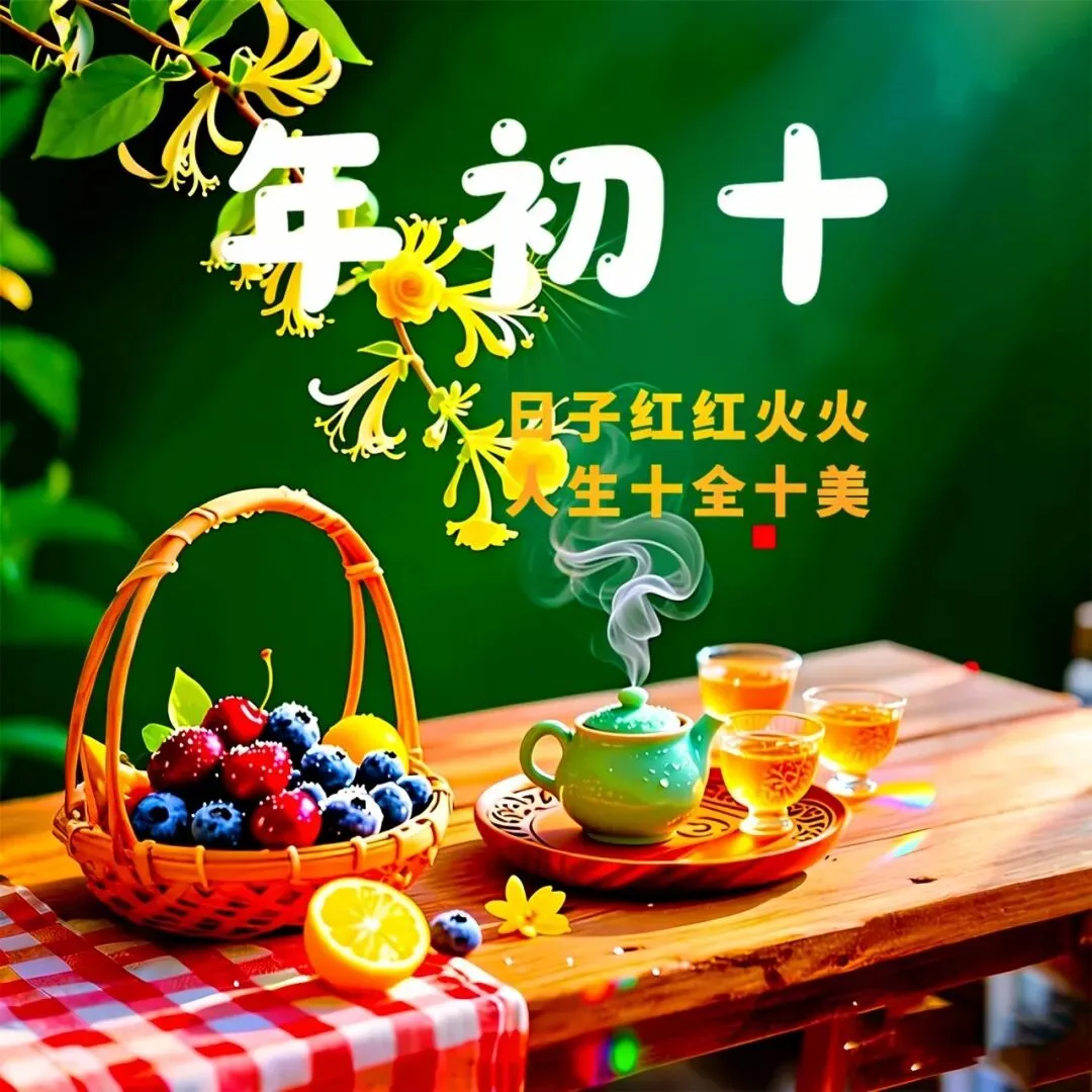 马年初十迎十全:福全、运全,财气全,家全、人全,万事全,一全百全,十全十美,愿你岁岁都开心,事事都如意!