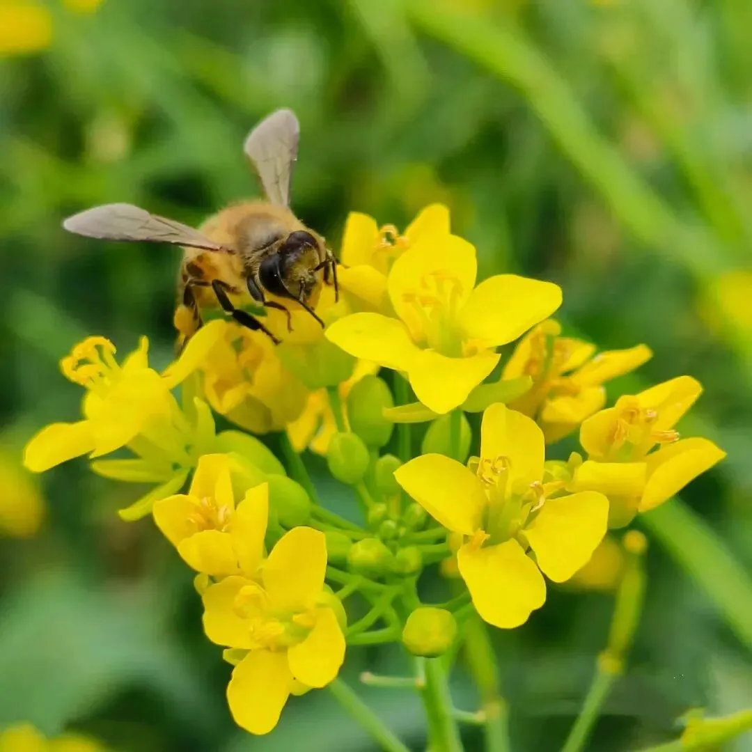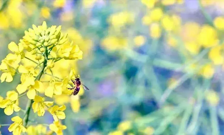 在阳光下一片金灿灿的田园景象,美不胜收,四周群山屏立,中间地势平缓,房屋整齐有序地环绕在油菜花海两侧,故而得名“坪盘”。放眼整片的油菜花地,如披上了一层黄金纱,一大片,一大片的,苍苍茫茫,有着大草原那般辽阔,那般壮美。真真是『满城尽带黄金甲』。