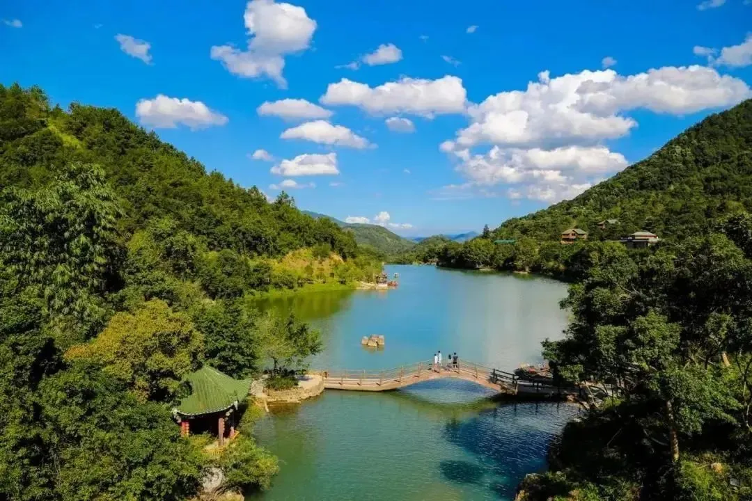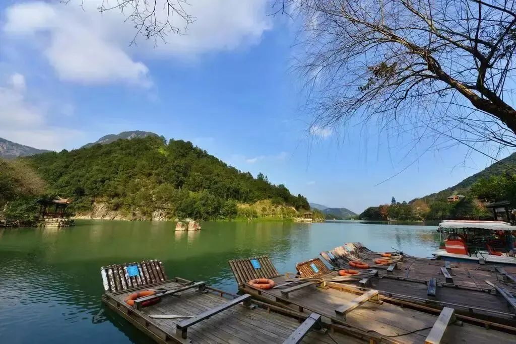 13:30抵达【九龙谷景区】。观龙潭瀑布景观,见证观音显圣,朝拜送子观音古洞,撒种米筛潭。前往游船码头体验【竹筏】(8-9人/排),欣赏湖光山色。