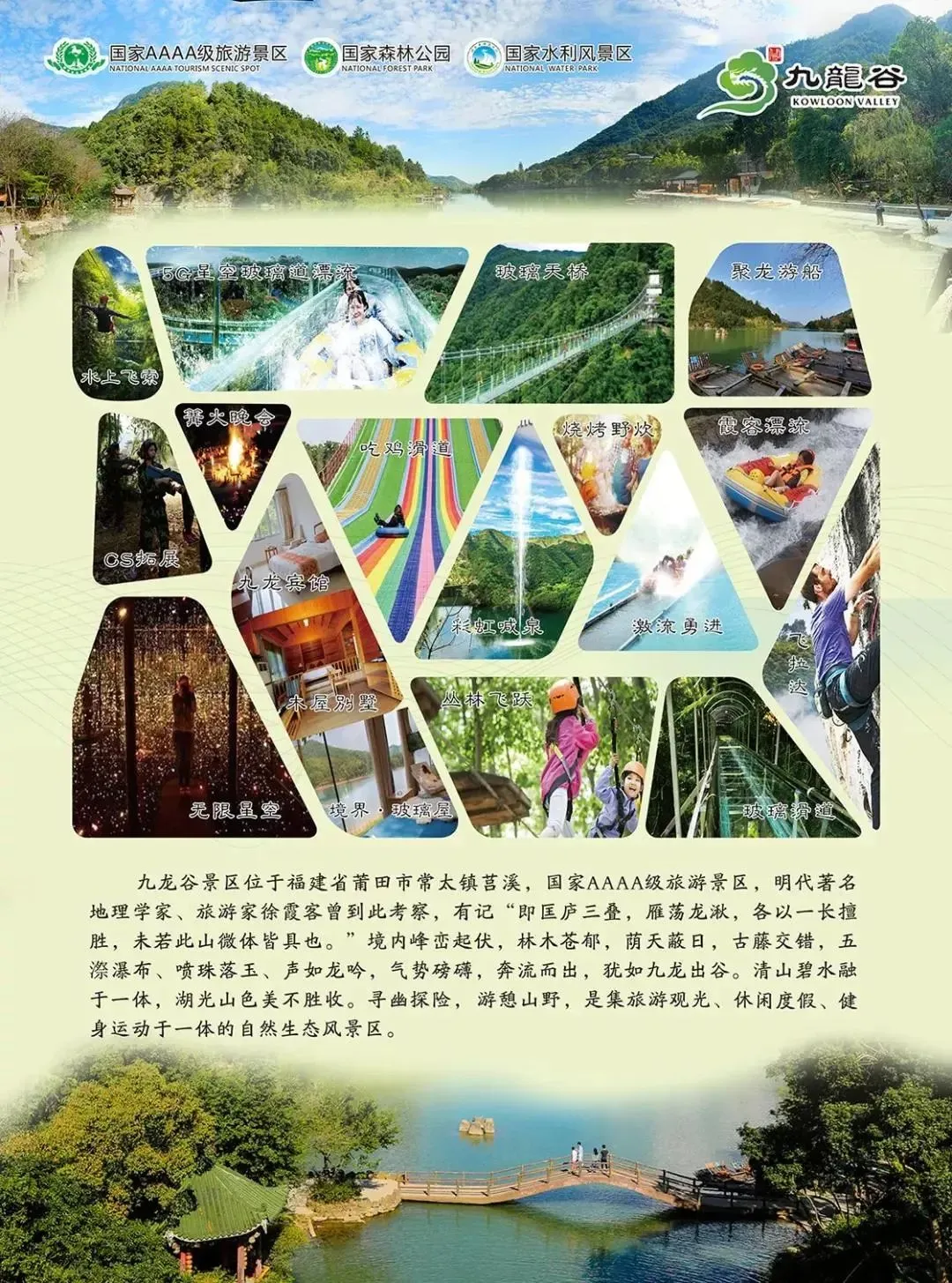 九龙谷素有莆田“后花园”之美称,森林覆盖率达95%以上,森林景观资源丰富,境内峰峦起伏,林木苍郁,遮荫蔽日,古藤交错。上接九鲤湖,俗称“下九鲤”。