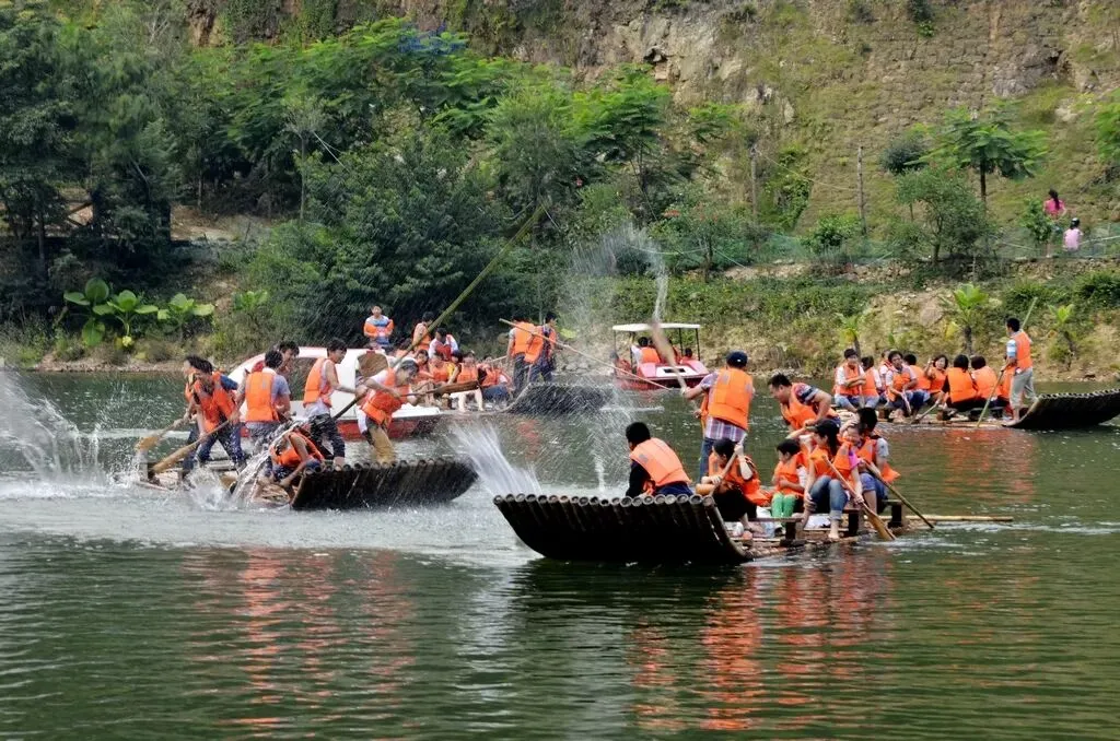 趣味竹筏,结伴划桨,伴着悦耳虫鸣,鸟儿歌唱游览于山水之间。