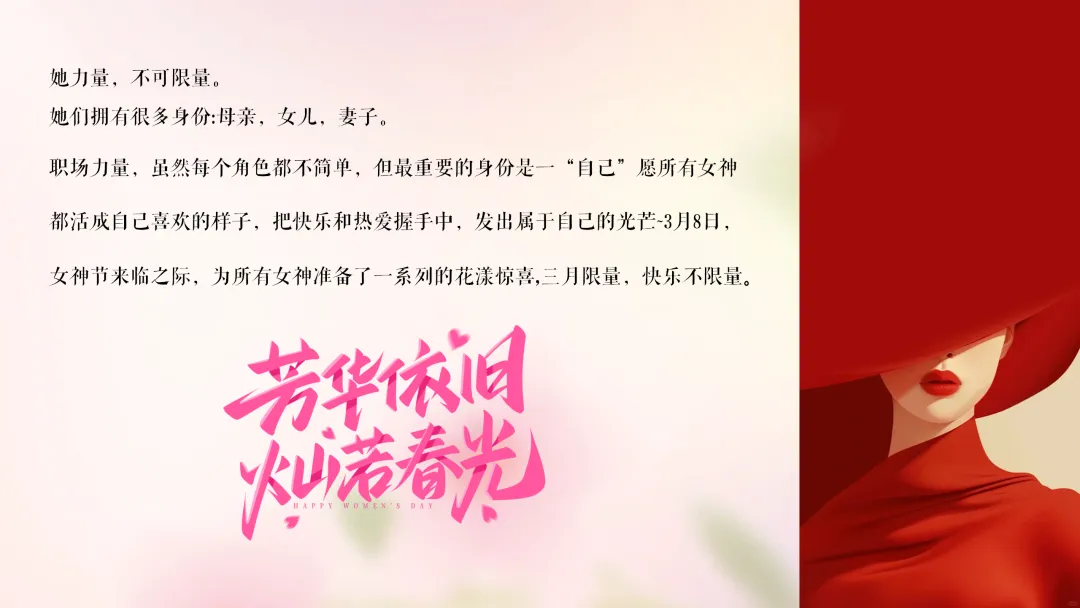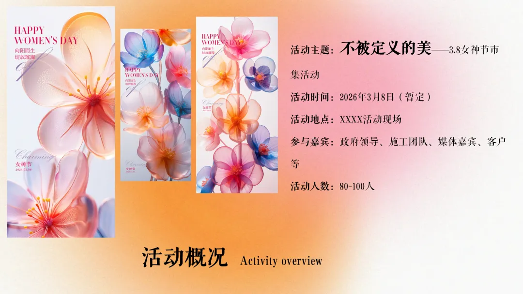 当前位置:首页>美女资讯>【女神节方案精选】| 2026商业地产三八女神节创意市集(不被定义的美主题)活动策划方案-45P