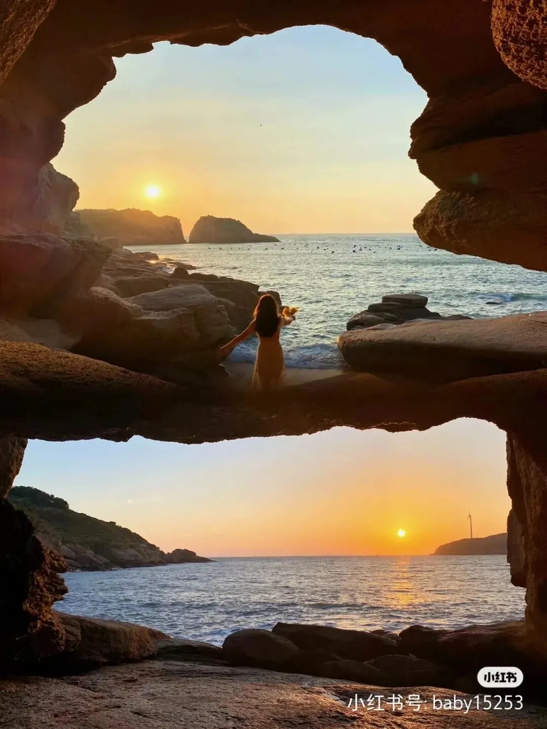 海蚀洞环绕着海岸线,犹如一个奇形怪状的天然相框,站在洞穴内向外望去,将海岸礁石风光、清澈湛蓝的海水、千姿百态的礁石与晶莹剔透的沙滩融合成的美,定格在你的眼中。这是大自然给予我们的浪漫。退潮时带来的震撼,是海浪击中内心后的久久无法平息。