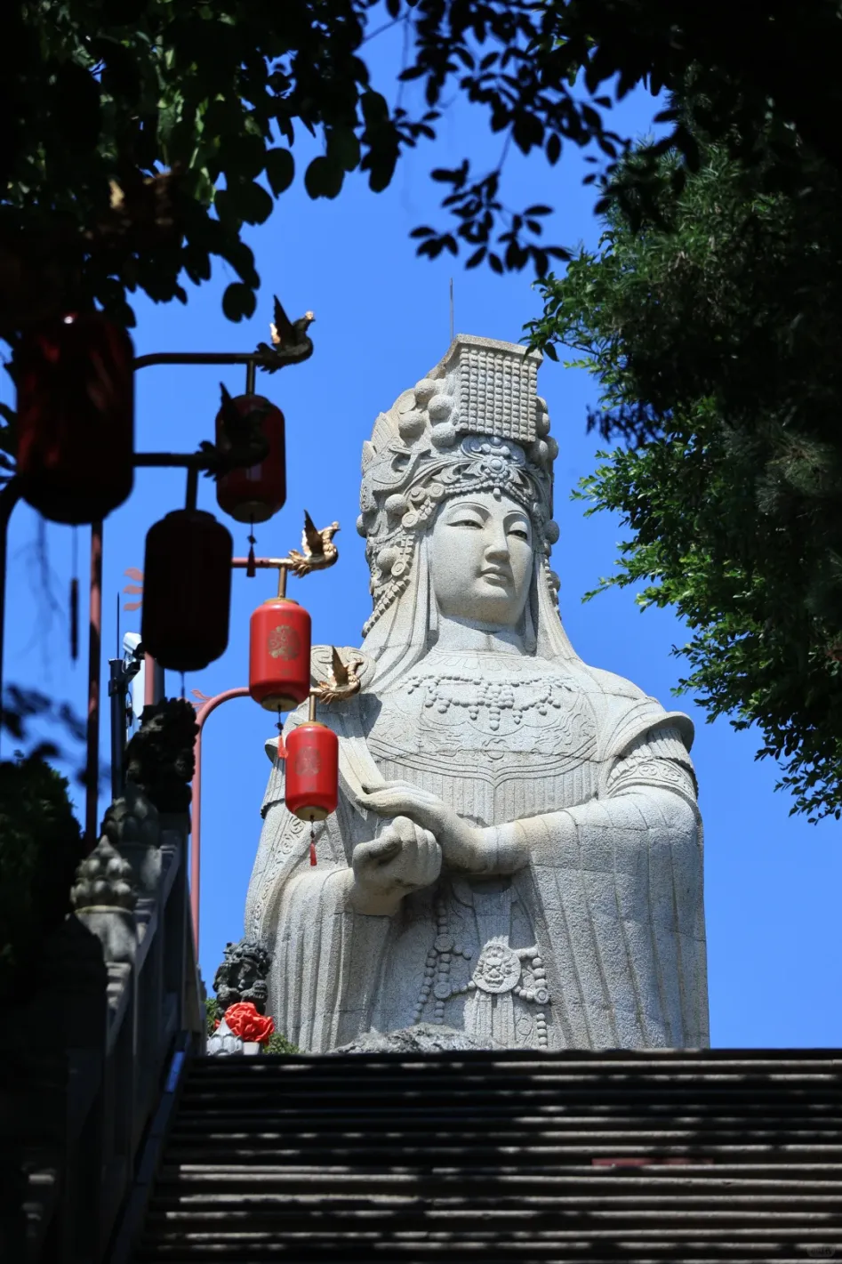 以南北为中轴线,依山势而建,在祖庙山顶建有14.35米高的巨型妈祖石雕像。(摄影/高亚成)