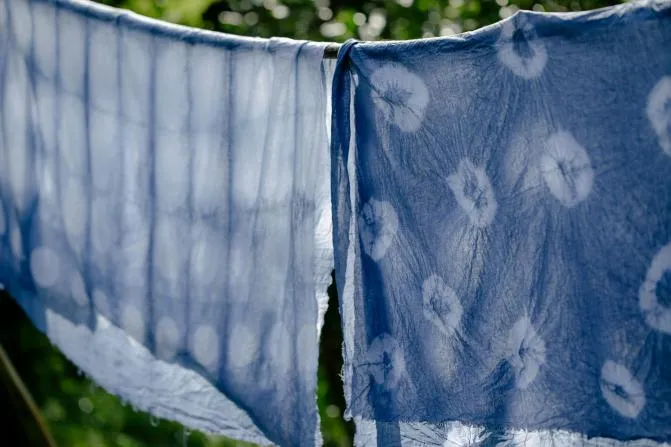 传承千年的非遗技艺!用纯天然植物(板蓝根等)发酵制成蓝色染料,扎、捆、夹,在布料上做出各种花纹。每一次折叠、每一道捆扎,都决定了最后图案的惊喜:永远无法完全复制,每一件都是孤品!