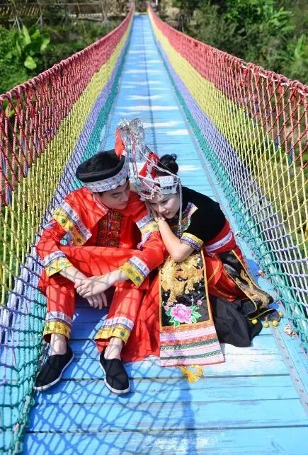 晃晃荡荡的彩虹索桥,