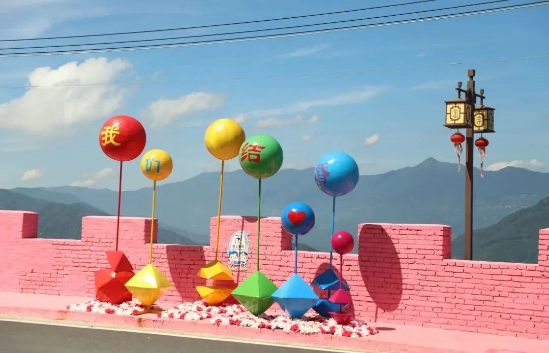 新来福小镇以陶瓷花瓶为特色,将陶瓷艺术融入到了各个角落,通过将花瓶、轮胎、石磨与建筑结合,创造出一种新颖的视觉体验,既美观又富有创意,漫步其中仿佛置身于一个陶瓷艺术的殿堂。
