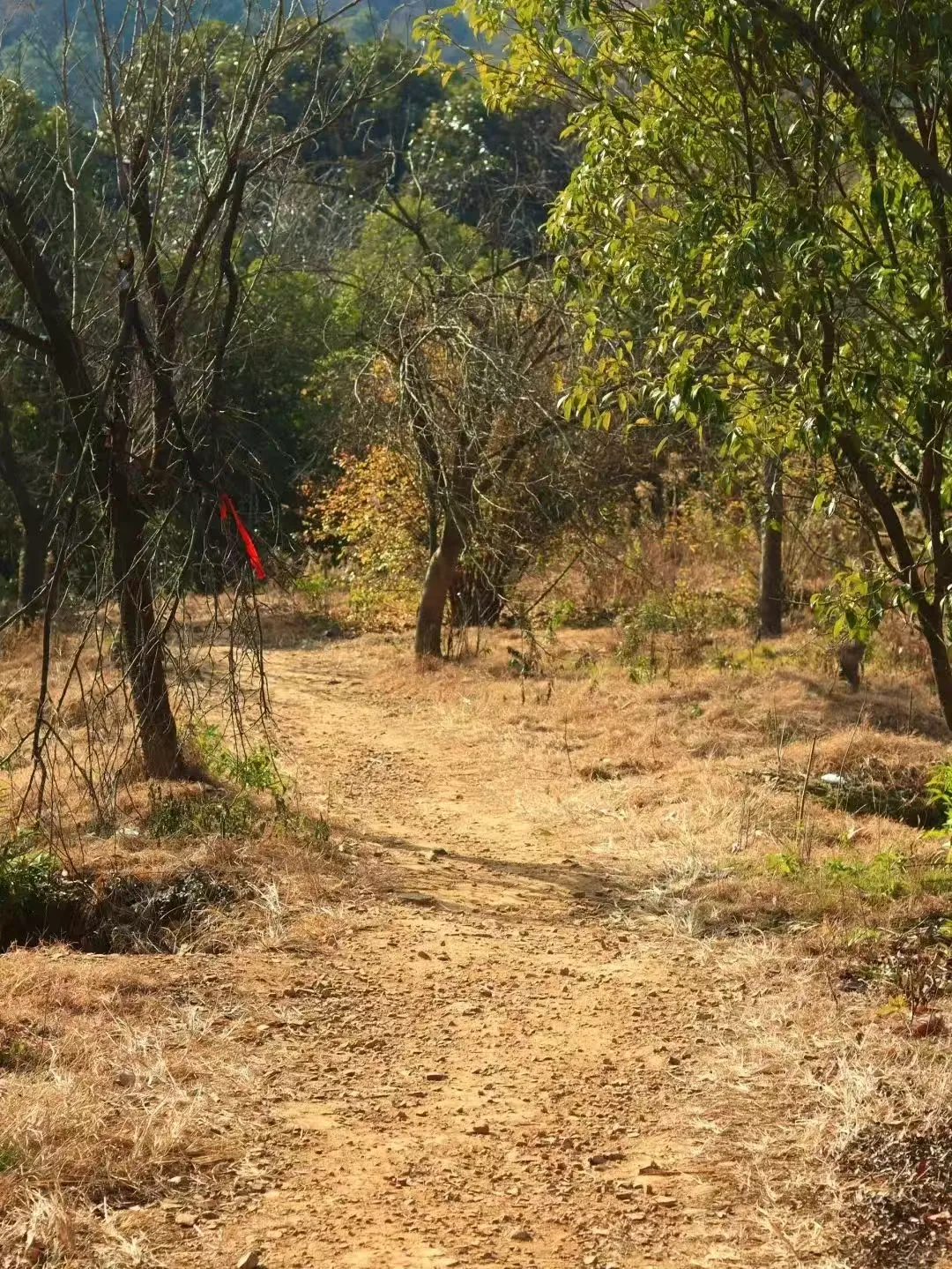 远眺山头形似米堆,环境清幽,山上繁花萦绕。