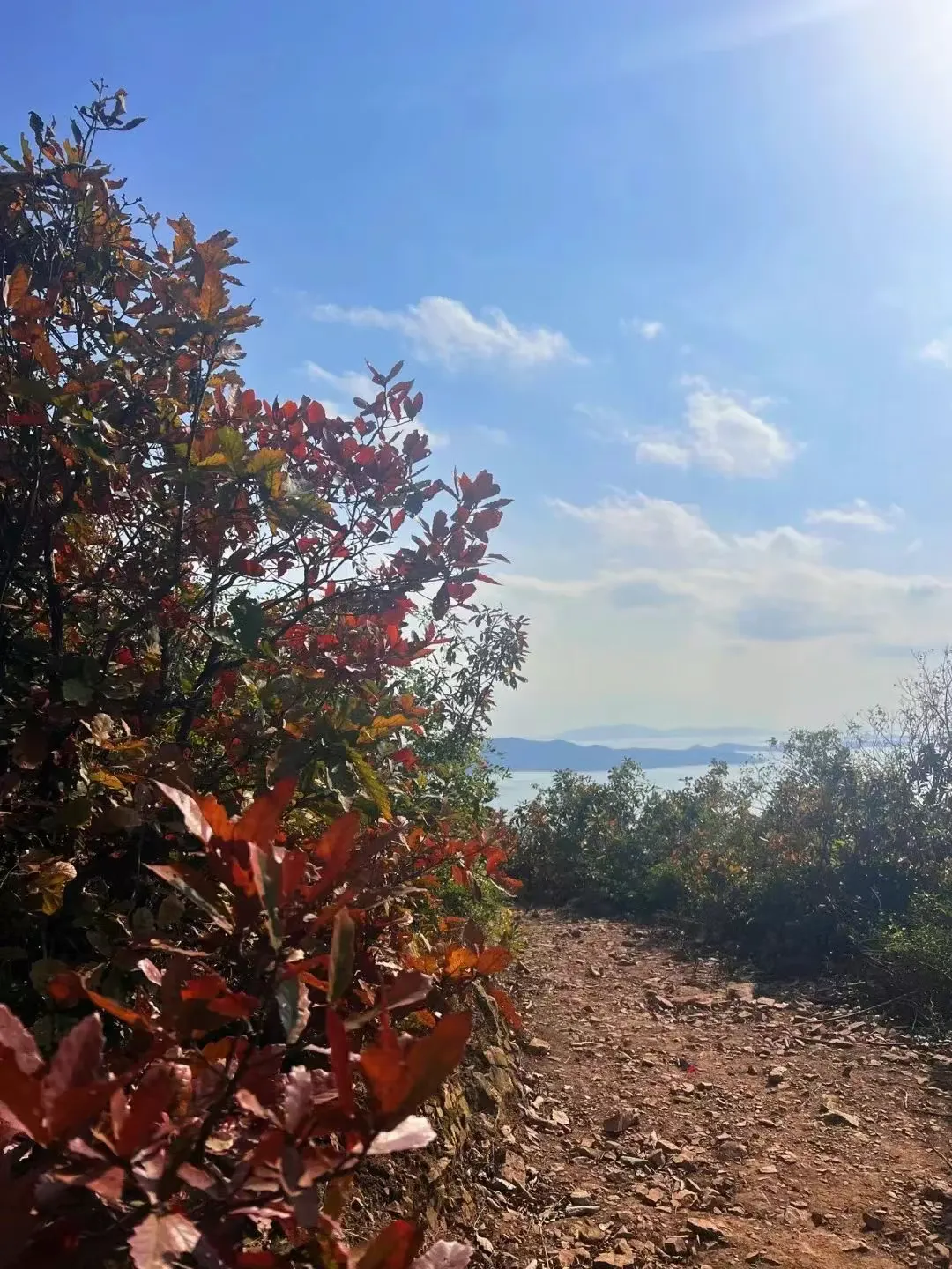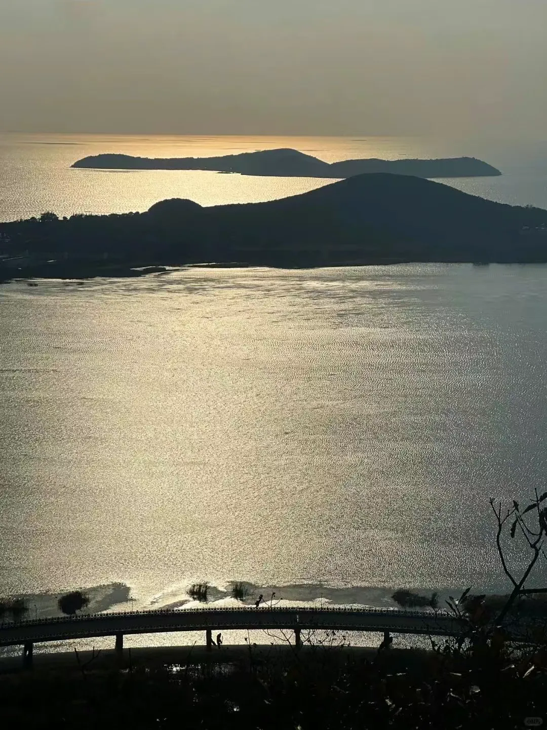 到达第一尖的山顶,可以俯视碧波万顷的太湖,沿山顶的森林防火公路一路徒步,公路在山顶蜿蜒,我们也仿佛漫步在云中。