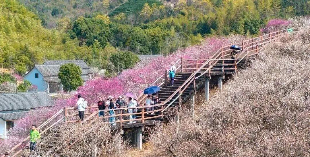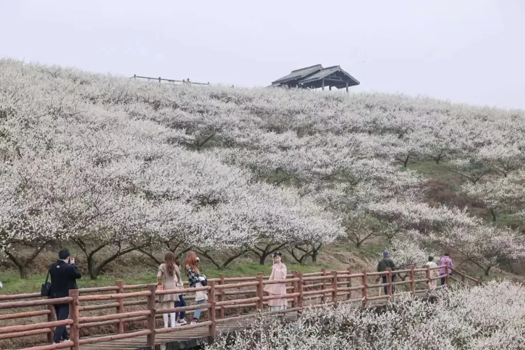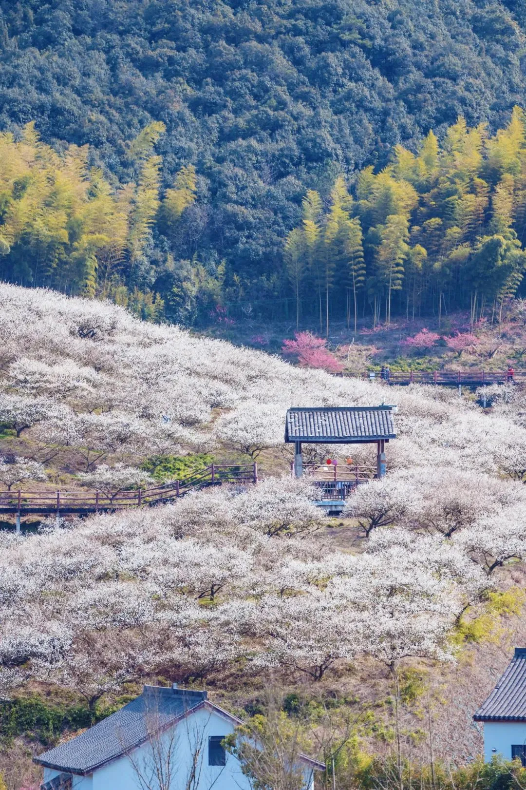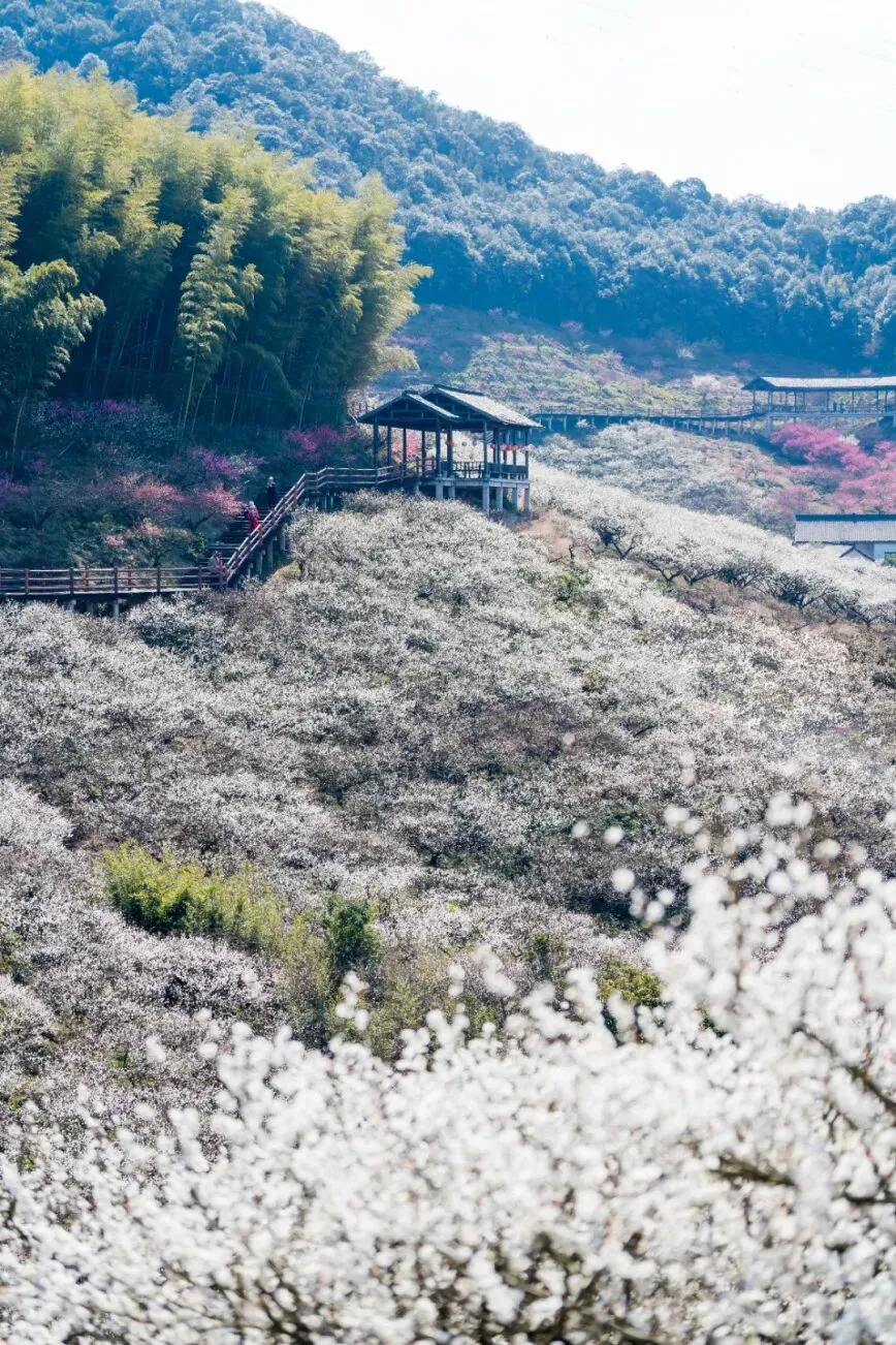 春意正浓,千亩白梅含苞待放,原乡小镇瀛洲梅园共设有12个观梅亭,栈道总长约4.2公里,种有青梅、东方红梅、绿萼梅等多种梅花竞相开放。带着家人,漫步在沿山势而建长三角地区zui长的梅林观光木栈道之上。