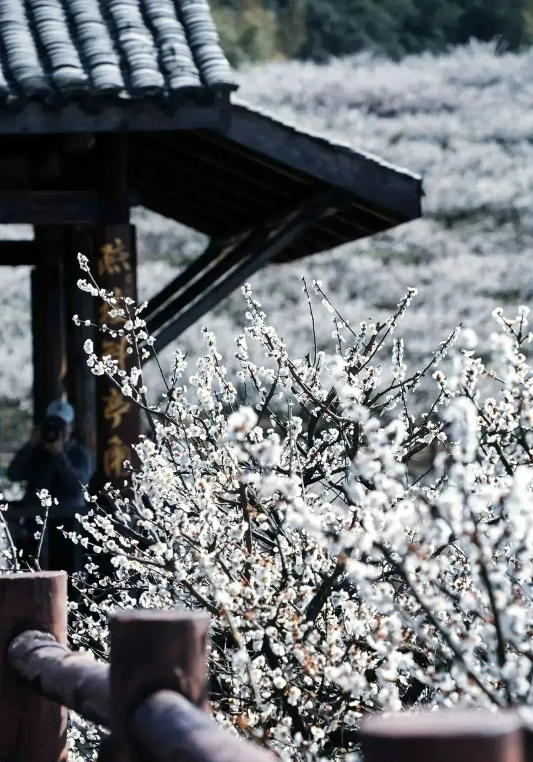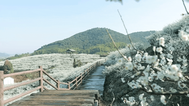不用去大理,这儿将千亩白梅与天空连成一片,告诉你真正的仙境怎样的,足以让你忘乎一切,驻步停留!
