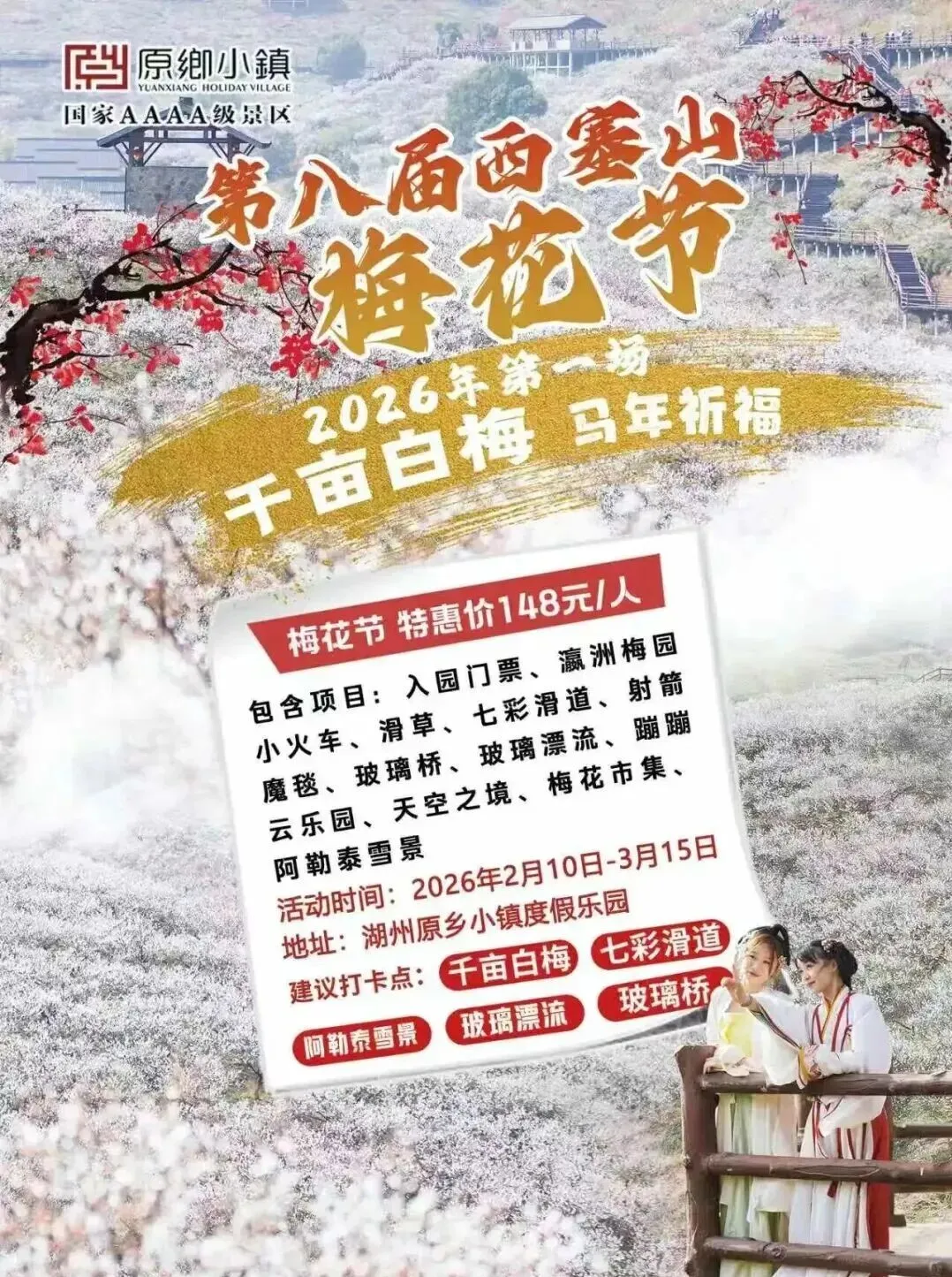 【3.07日】喜迎女神节特惠-休闲游 | 集10+游玩项目于一体,西塞山千亩白梅,原乡小镇浪漫之约,初春踏青,邂逅阿勒泰同款雪景!