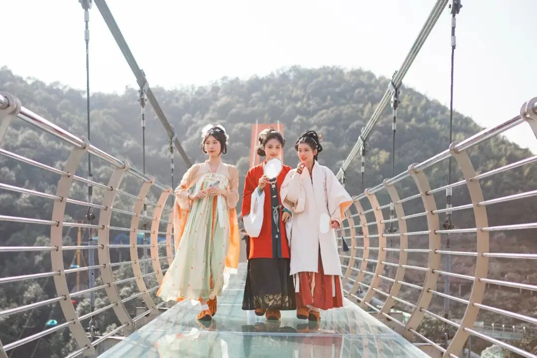 有一座玻璃桥,全长308米,悬空长度280米,悬空距离绝对华东第一,相当于36层的高楼!整个景区的美景尽收眼底!
