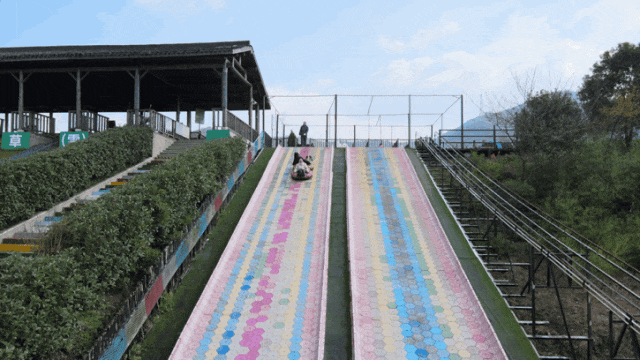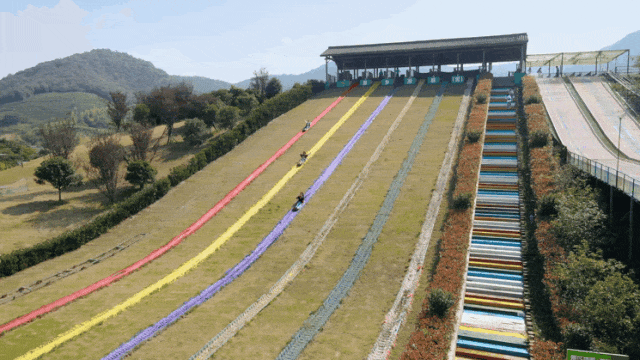 从彩虹滑倒上飞驰而下,听风从耳边飞过的声音,感受身体飞起的失重感,这样的彩虹滑道你体验过吗?