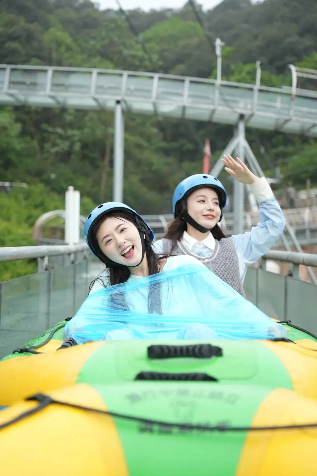 坐上皮划艇,扣上安全带,速度是72迈,360°大回环顿时水花四溅,好像悬浮在山林中穿梭,开始从山顶漂到山底的尖叫之旅!