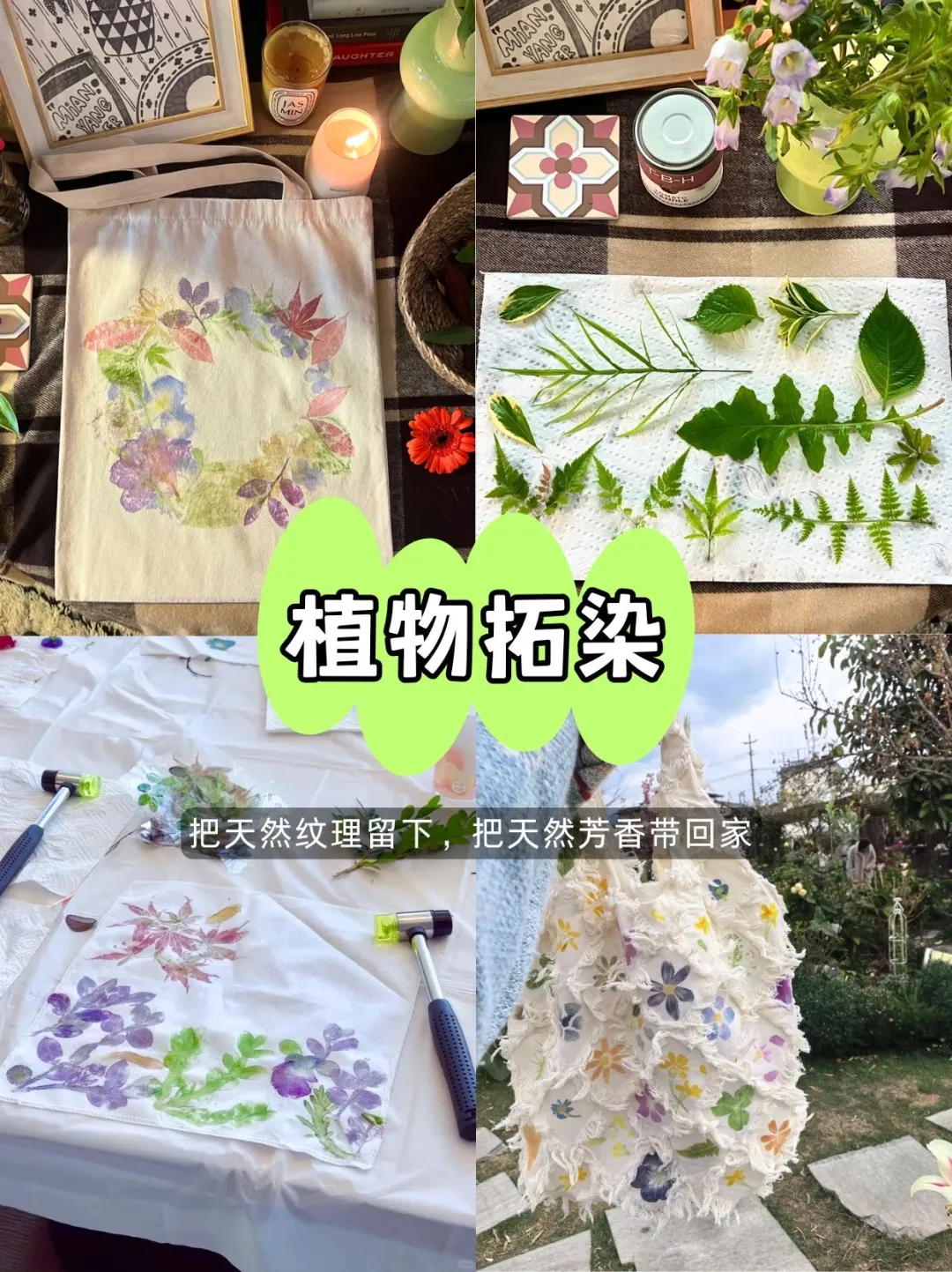 把春天的花草“印”在布料上自然肌理,独一无二,留住春日美好!
