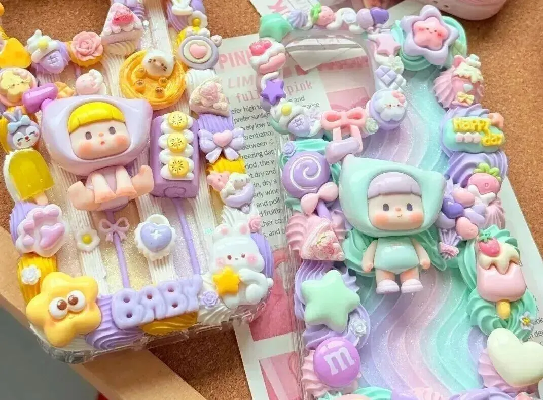 奶油胶 + 公仔配件 + 亮片,自由 DIY 可爱、甜妹、ins 风。实用性拉满,人人用得上,拍照可爱,适合年轻女生。