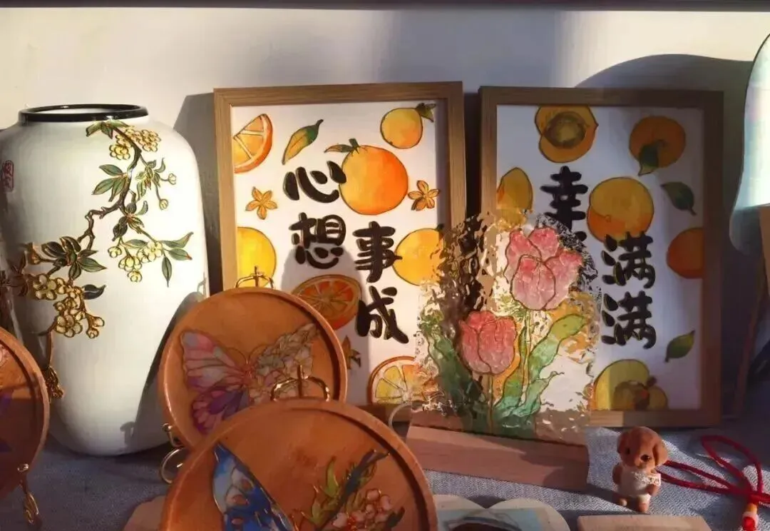 用铜丝勾勒图案,填入珐琅釉料,烧制后制成胸针、书签或手机壳,既有传统韵味,又符合现代审美。