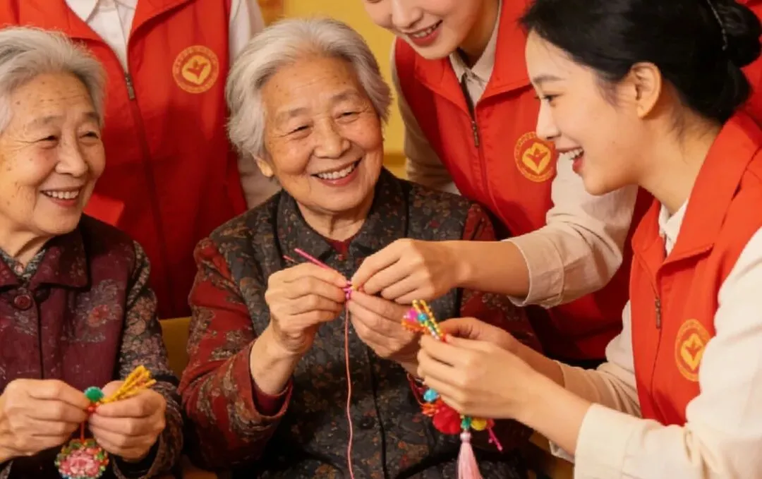 组织女神走进敬老院,陪老年女性聊天、做手工、表演小节目,用陪伴送上节日温情。