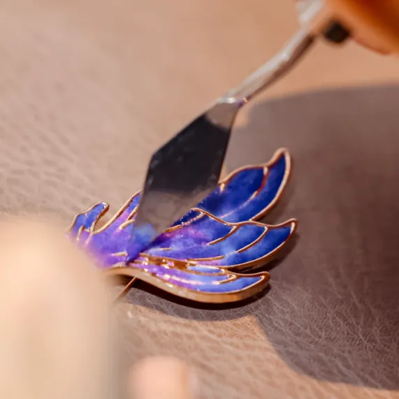 以细铜丝勾勒纹样,用矿物釉点染色彩,经高温烧制,成就温润光泽与东方雅韵。