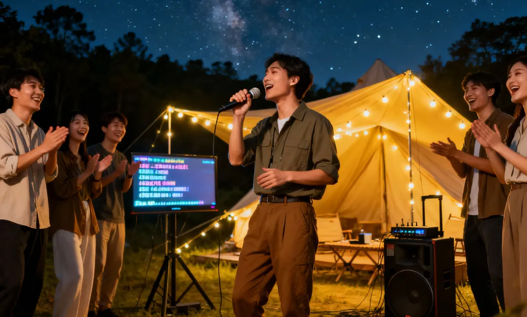 如果更喜欢自由随性的感觉,还可以选择在露营草坪上欢唱。在美景环绕中放声歌唱,释放情绪,定格团队欢乐瞬间。