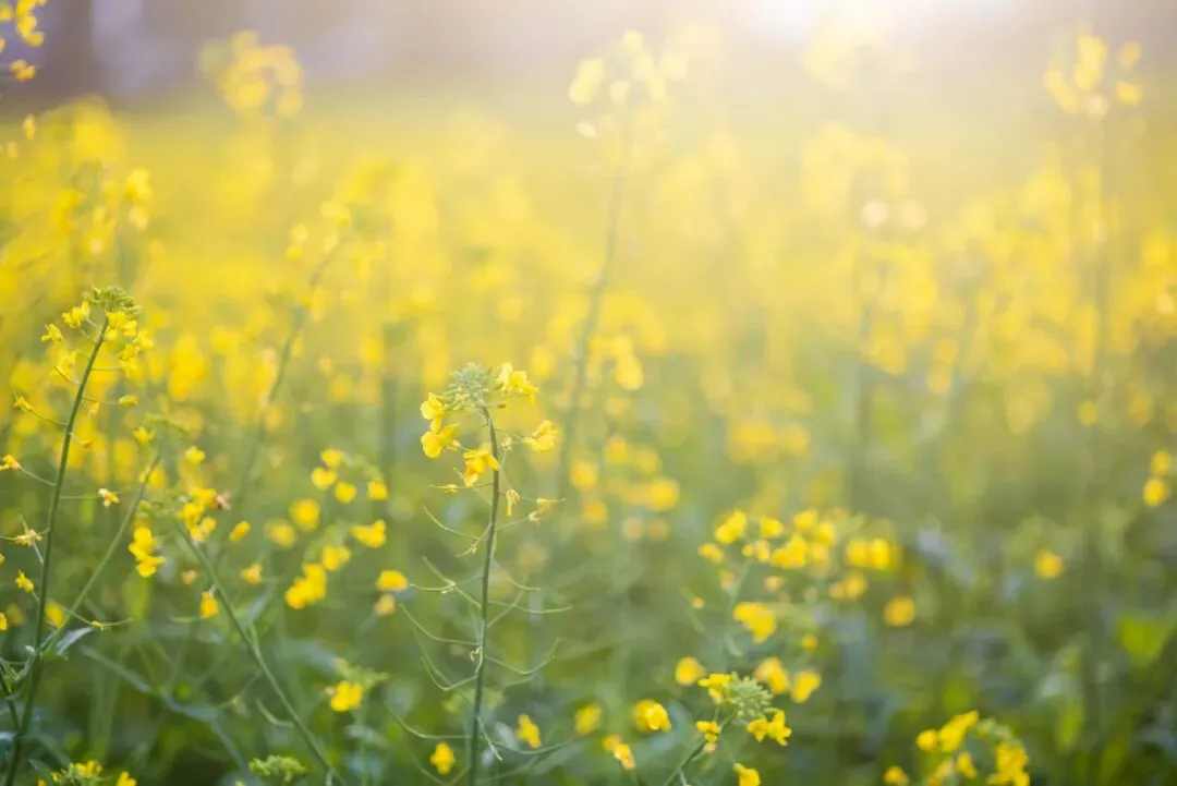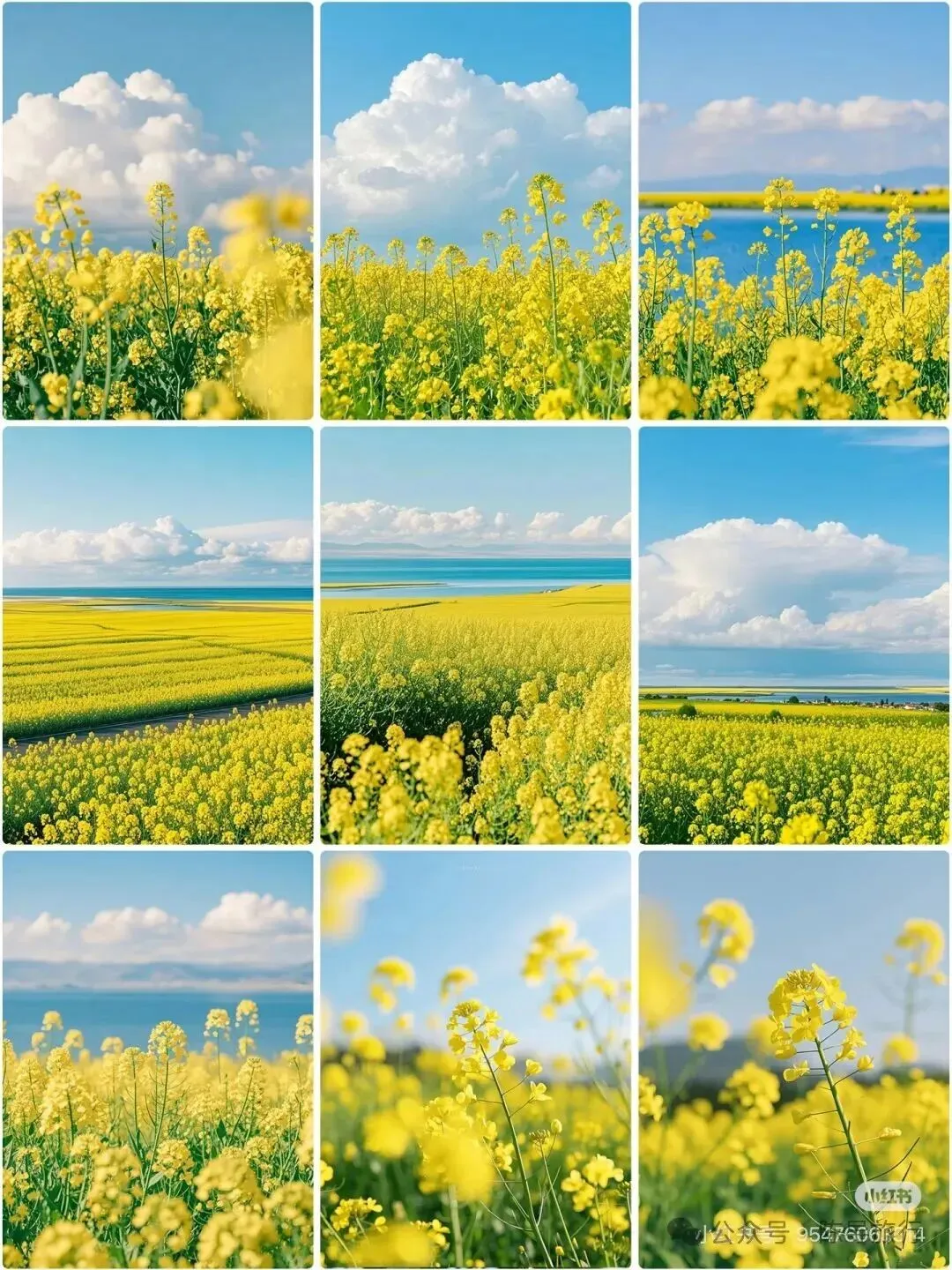 油菜花烂漫绽放,镶嵌于绿水青山间